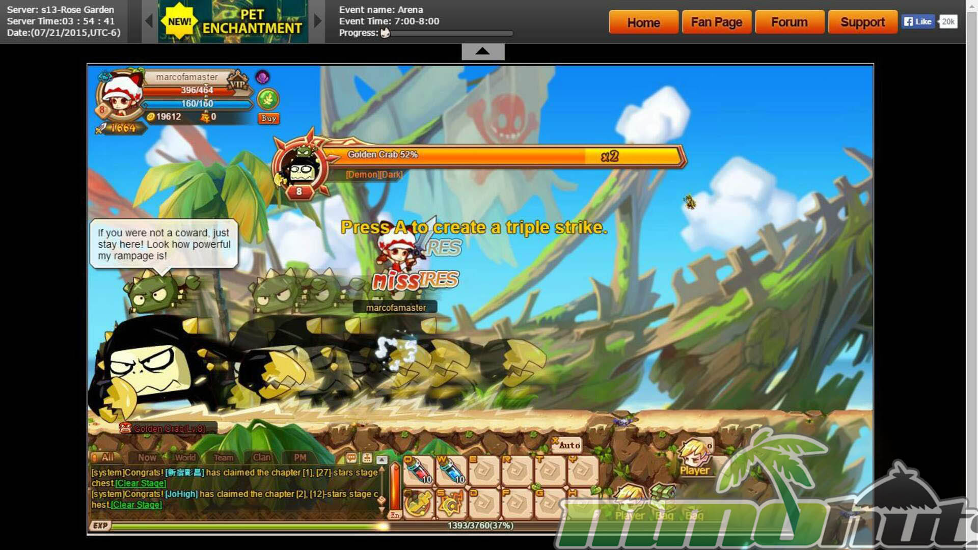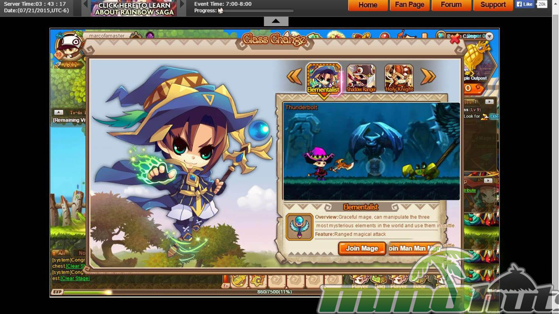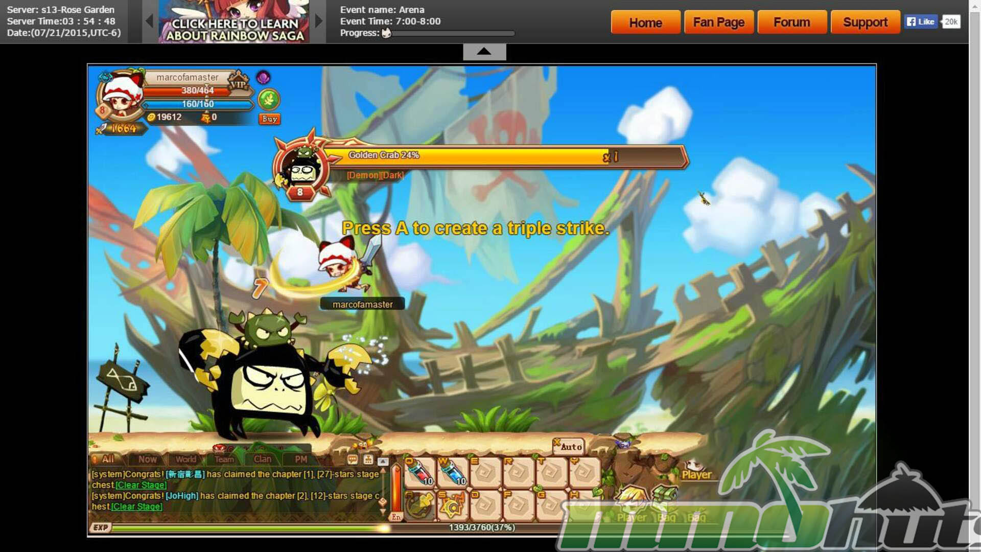 Rainbow Saga drops you into a colorful fantasy adventure where you play the prophesied hero and fight your way through side-scrolling stages packed with monsters, loot, and bosses. With three core classes to grow into, the loop is built around quick quests, short instances, and frequent power bumps from gear, upgrades, and unlockable systems. The story setup is simple, rescue the kidnapped princess from the Demon King, but the real draw is the constant forward motion, flashy skills, and a steady stream of activities that keep a browser MMO feeling busy.