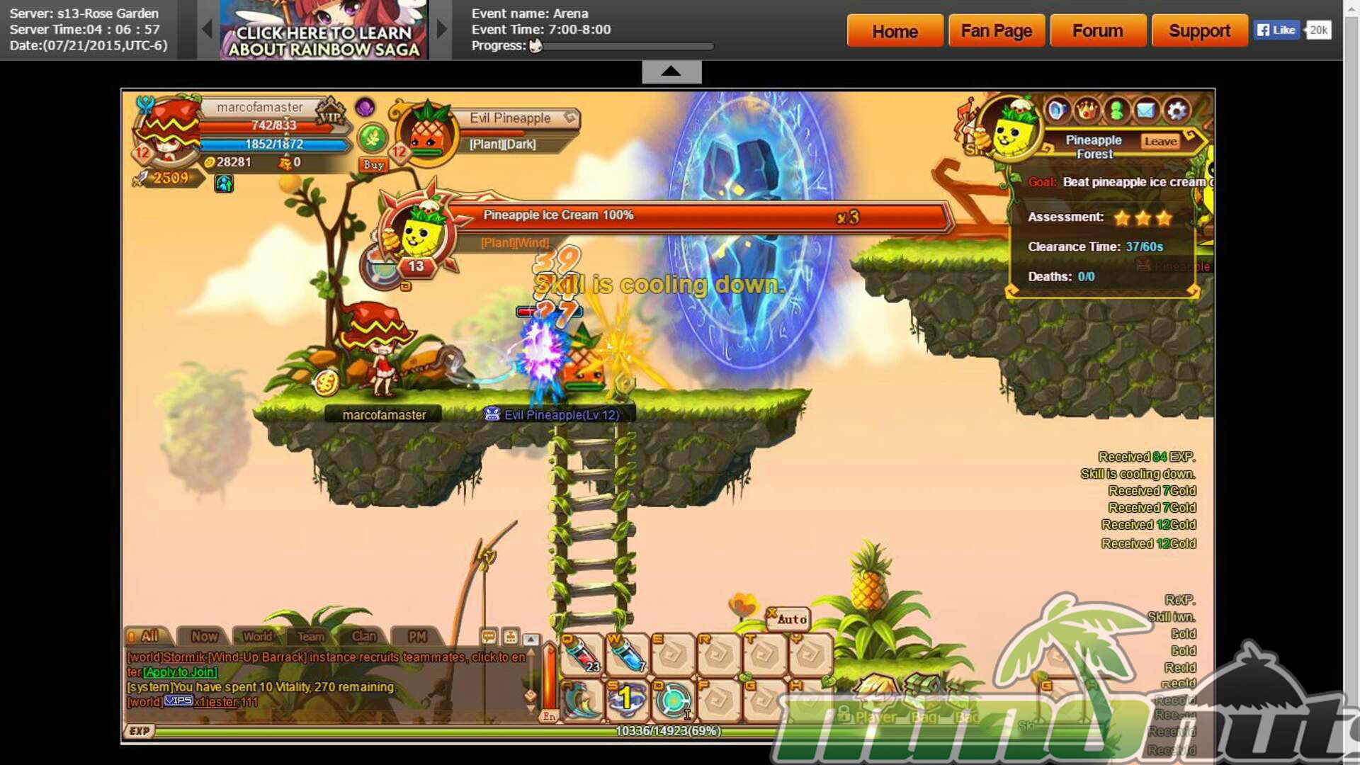 Rainbow Saga is a free-to-play 2D browser MMORPG that mixes chibi anime visuals with side-scrolling, platform-style combat and quick instanced content.