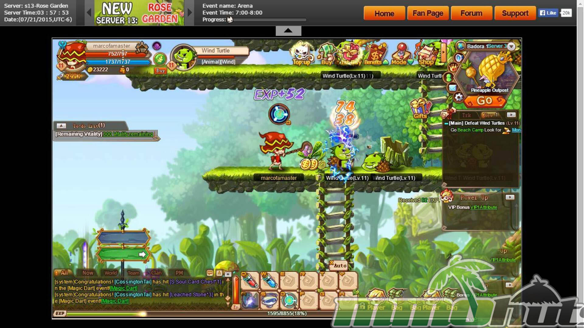 Once you lock in a class, Rainbow Saga opens up more of its systems and begins to resemble a compact theme-park MMO: gear progression, upgrade paths, pets, mounts, and instanced dungeons become part of the regular routine. It also layers in smaller daily activities like quizzes and monster-hunting events. The notable point is the sheer number of features packed into a browser-based framework, with many mechanics unlocking gradually via level requirements (for example, item enhancement requires level 15).