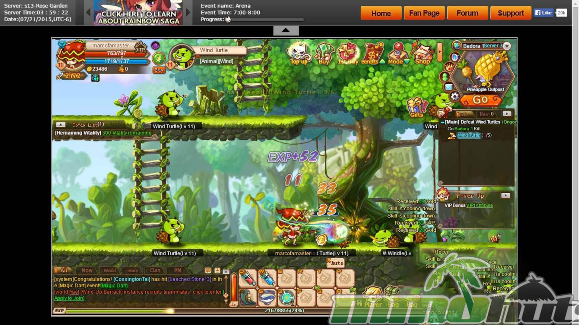Rainbow Saga is a browser based MMO and will run smoothly on practically any PC. The game was tested and works well on Internet Explorer, Opera, Firefox and Chrome. Any modern web-browser should run the game smoothly.