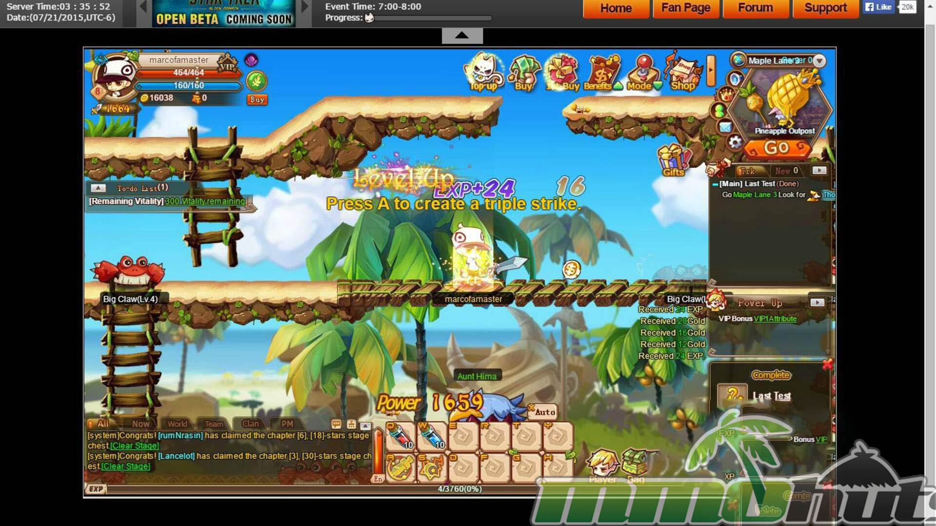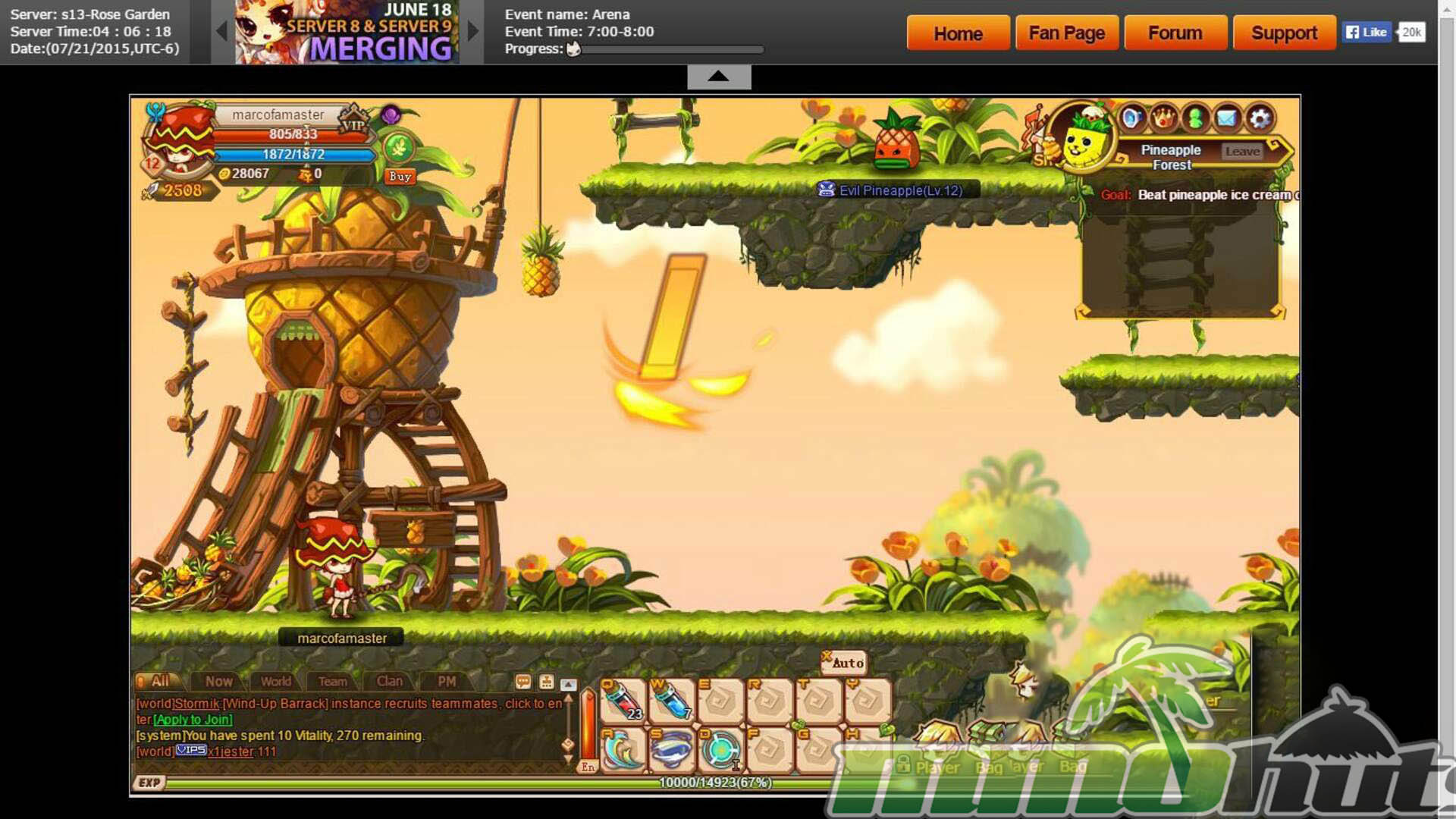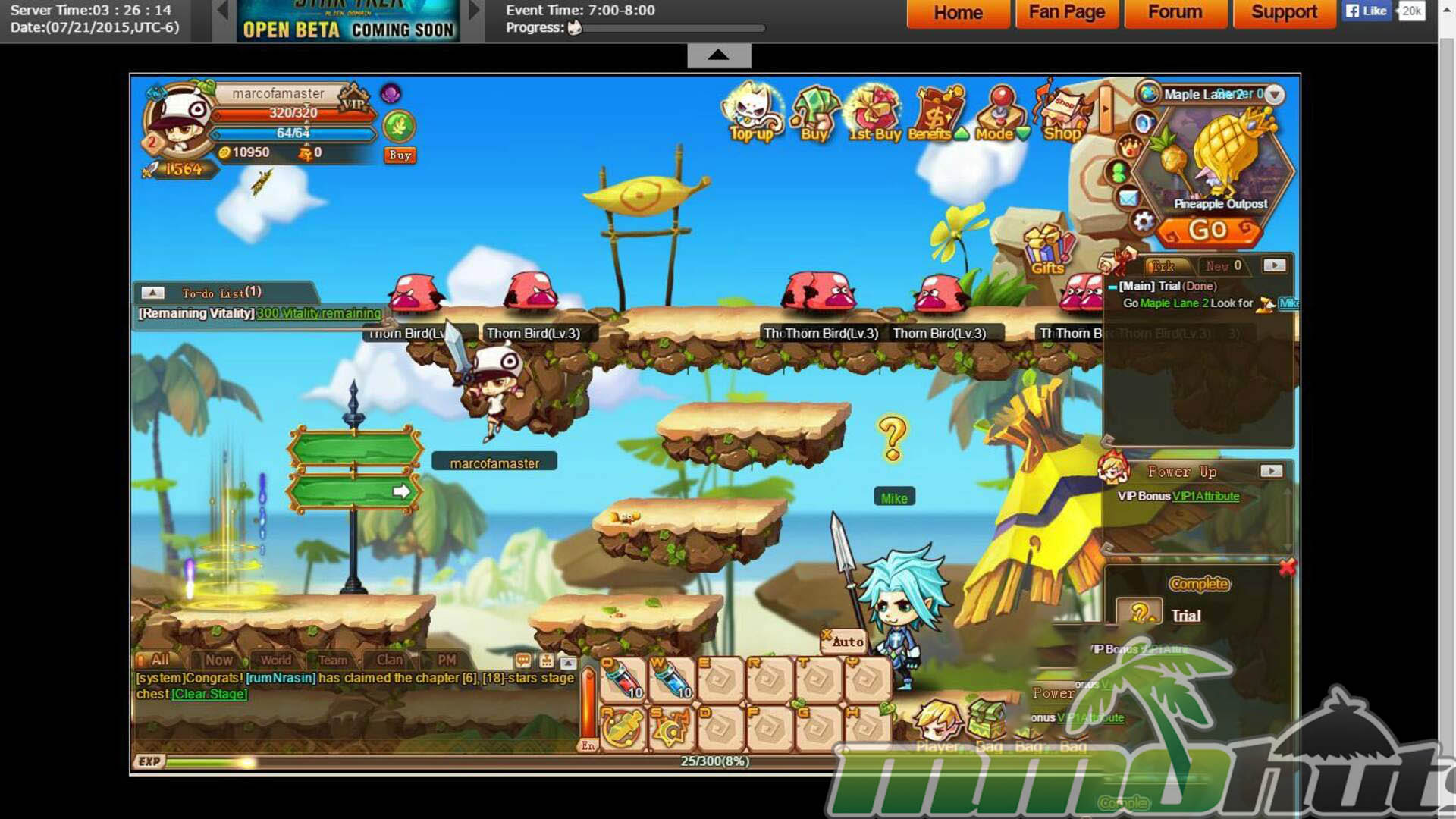 The adventure takes place in Troonmill, a cheery fantasy world where you are cast as the Chosen One and pointed toward a clear objective, recover the princess from the Demon King. The overall look is deliberately cute, with chibi character proportions, colorful backdrops, and effects that pop nicely during combat. Anyone familiar with classic side-scrolling MMORPGs will recognize the vibe immediately, and the game leans into that comfort-food presentation rather than trying to be edgy or realistic.