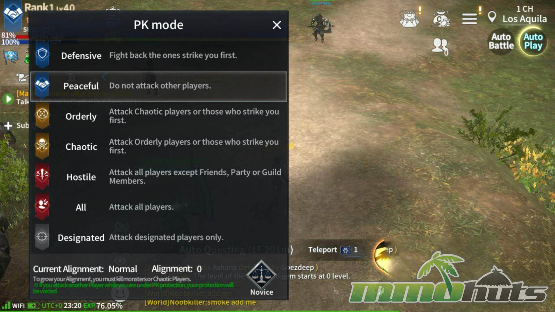 - Open World PvP – toggle between different PK behavior settings, from retaliatory combat only to full free-for-all targeting.