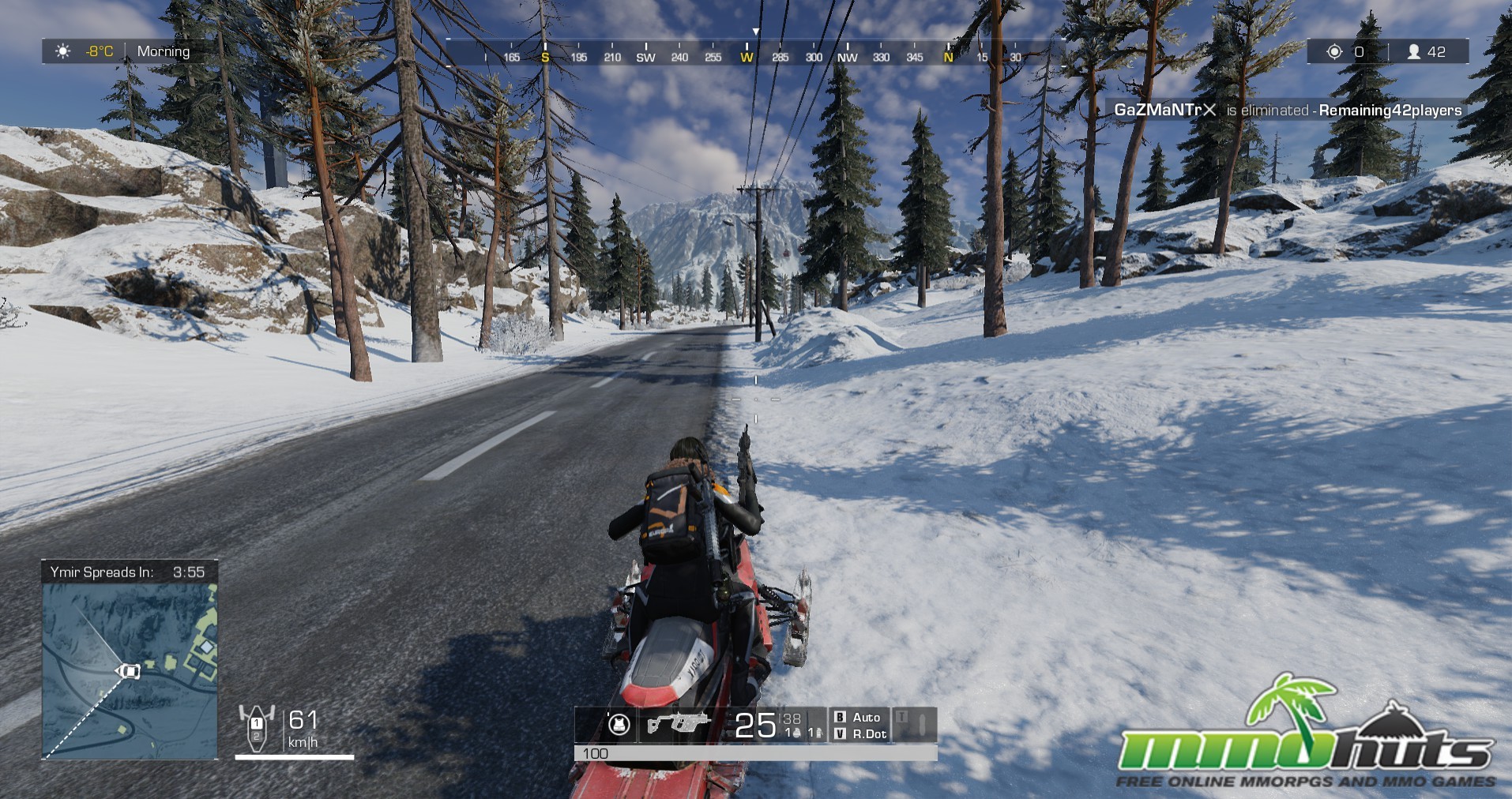 Ring of Elysium takes the familiar battle royale loop and anchors it to a snowbound setting on Mt. Dione, a ski-resort map filled with lodges, open slopes, winding roads, and chokepoints that naturally produce firefights. Before the match begins you select a starting area on the map, which changes the early pacing compared to parachute-based BRs, since you can plan a route and anticipate where other squads may appear based on nearby spawns.