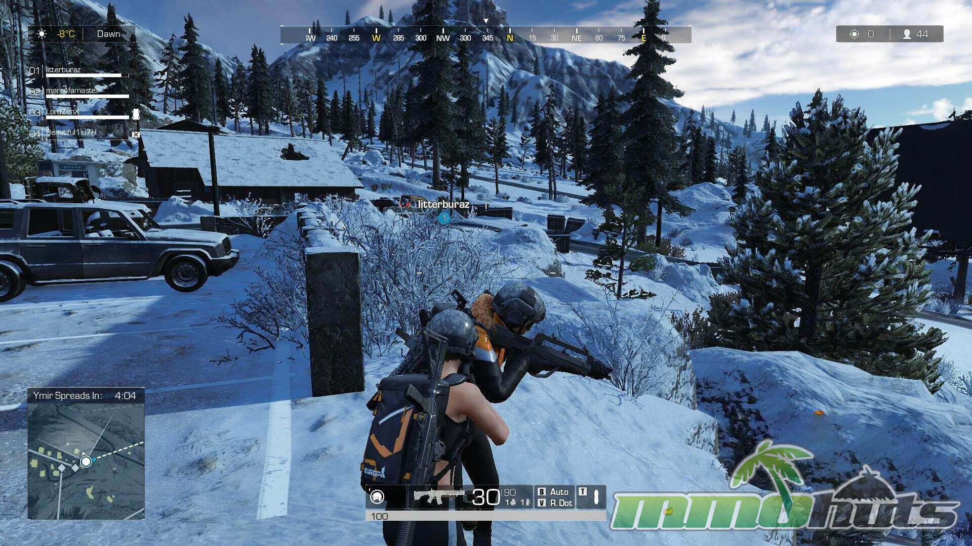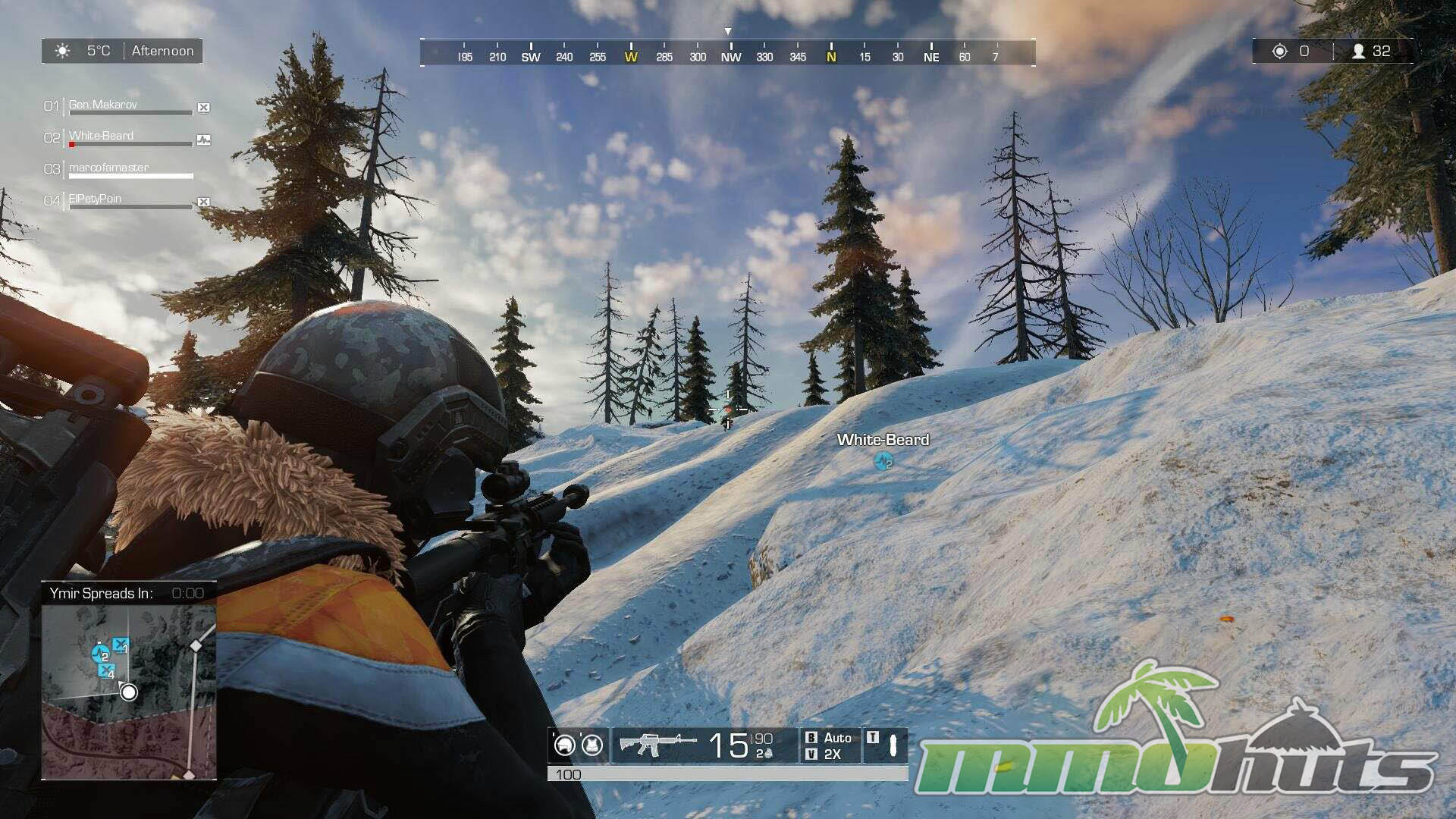 Ring of Elysium takes the familiar battle royale loop and anchors it to a snowbound setting on Mt. Dione, a ski-resort map filled with lodges, open slopes, winding roads, and chokepoints that naturally produce firefights. Before the match begins you select a starting area on the map, which changes the early pacing compared to parachute-based BRs, since you can plan a route and anticipate where other squads may appear based on nearby spawns.