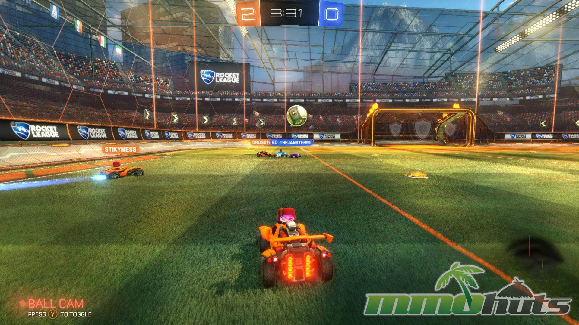 Camera management is another important skill. You can toggle a ball-focused view that keeps the action centered, which is excellent for tracking bounces and aerial reads. The tradeoff is awareness, because the locked view can hide where opponents and teammates are rotating. A free camera helps with spacing, bump attempts, and positioning for passes. Switching between the two depending on the moment is part of playing efficiently.