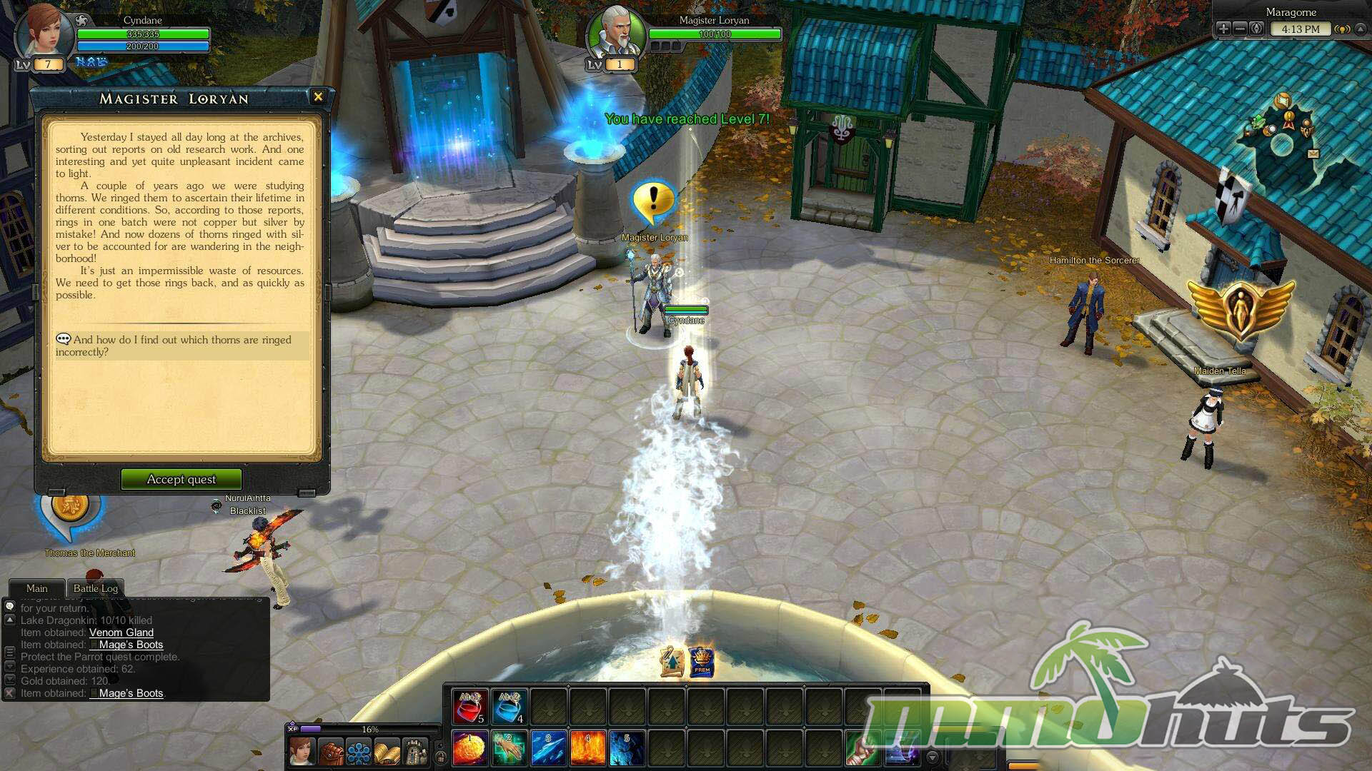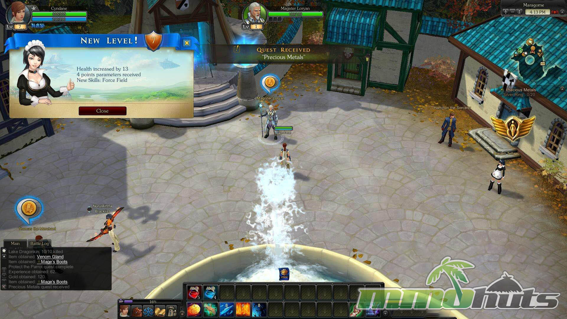Royal Quest drops players into Aura, a bright medieval fantasy world where spellcraft, alchemical experiments, and light technology all coexist. The Kingdom of Elenia is under threat from the Black Alchemists, and the king’s call draws new adventurers toward the front lines. From there, the game follows a classic MMORPG path: pick one of four core classes, level through quest hubs and field zones, collect upgrades, and gradually specialize your character as you grow into tougher content.