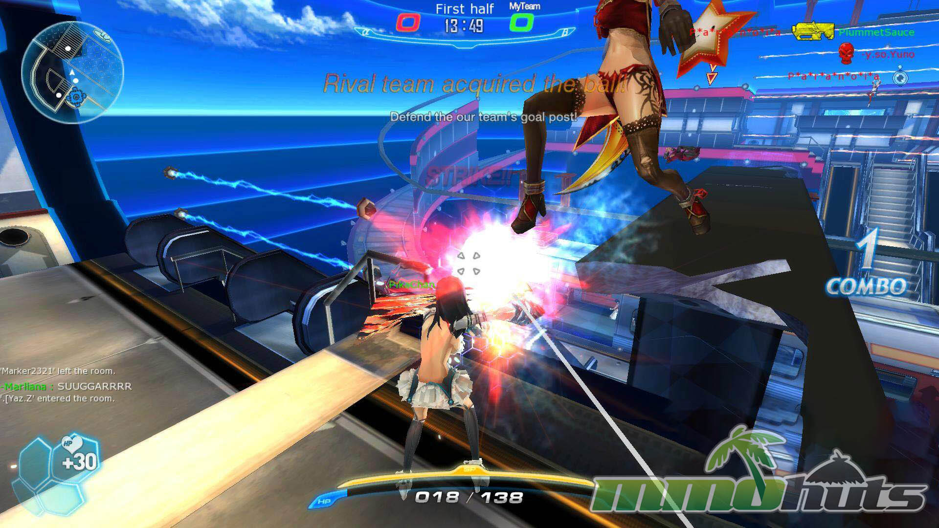From the lobby, players can pick from a large set of maps tied to different modes, and some locations are reused across multiple rule sets (for example, Nightmare appears in both Chaser and Captain). Currently, there are nine different game modes offered in S4 League. Touchdown (TD) is one of the signature modes, where teams battle over the Fumbi (the ball) and try to carry it into the opposing goal. The format even includes a Half Time, letting players swap characters and gear before the second half begins. Scoring is not only about goals, it also rewards kills and assists around the Fumbi carrier and defensive plays that protect your team’s runner.