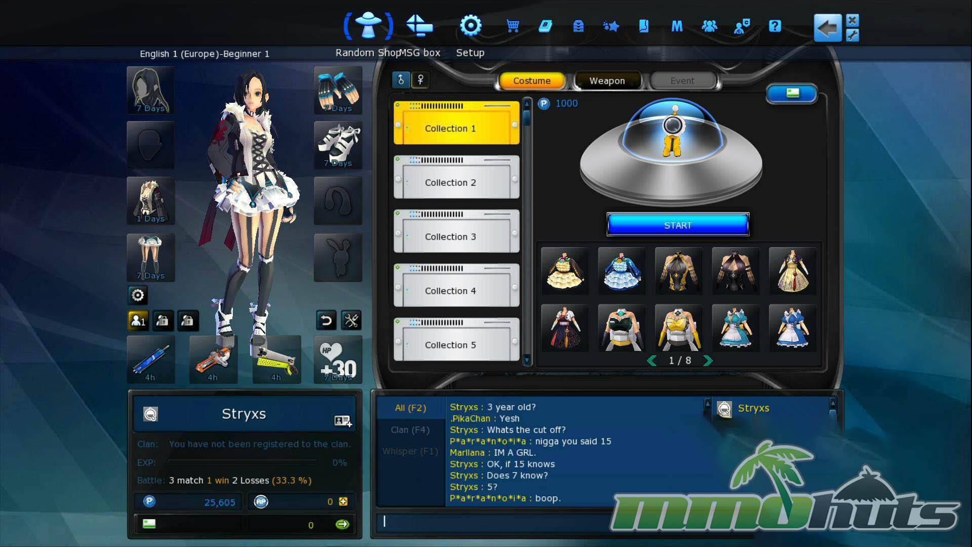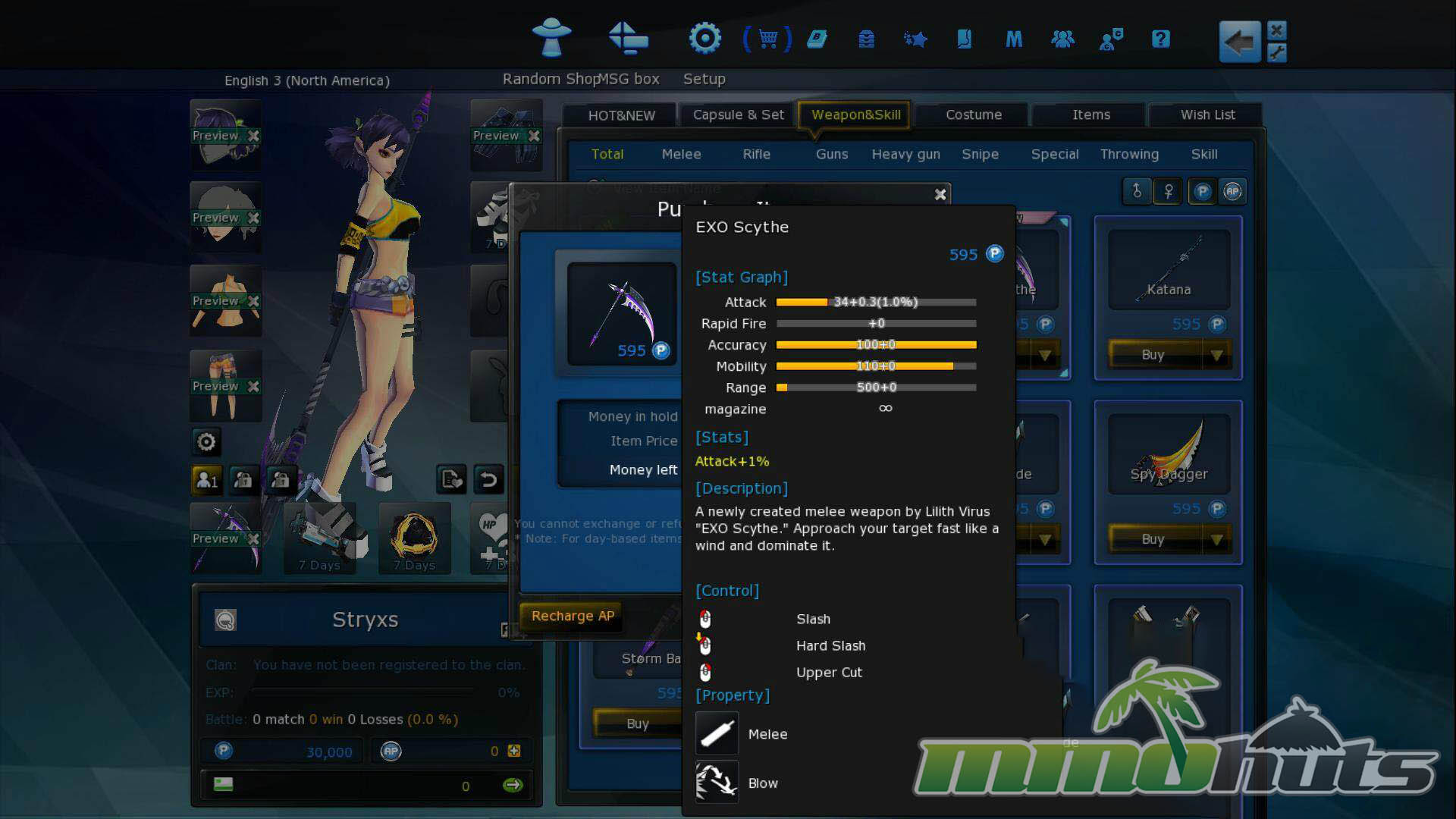 • Rent Weapons – weapons can be rented for 5, 10, and 30 hours at a time. Only counts active use, so logging off won’t cause weapons to lose time.