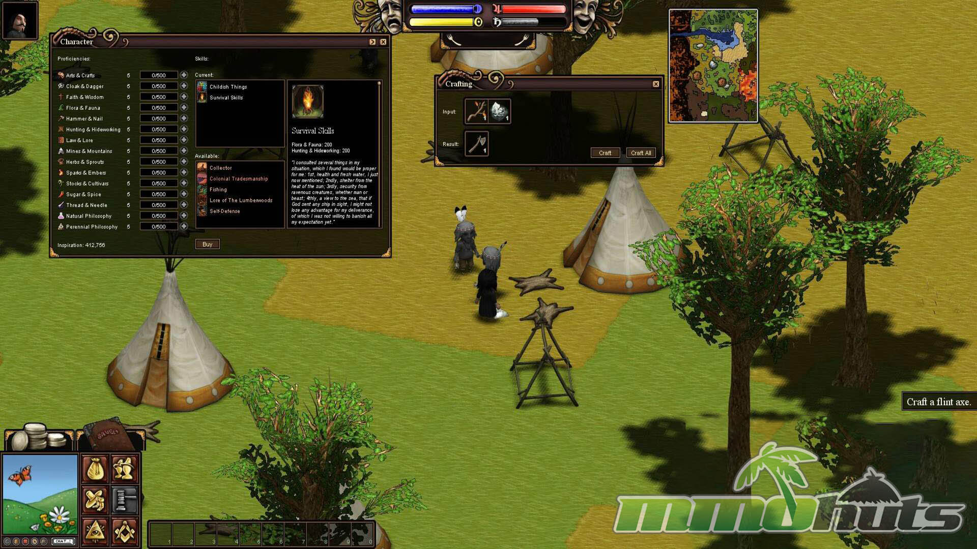 The tutorial is more important here than in most MMOs because Salem does not follow familiar conventions. It introduces the rhythm of gathering, experimenting, and using the interface to chain actions together. Skipping it is possible, but doing so usually means spending the next few hours confused about why something will not craft or why a resource is not behaving the way you assumed.