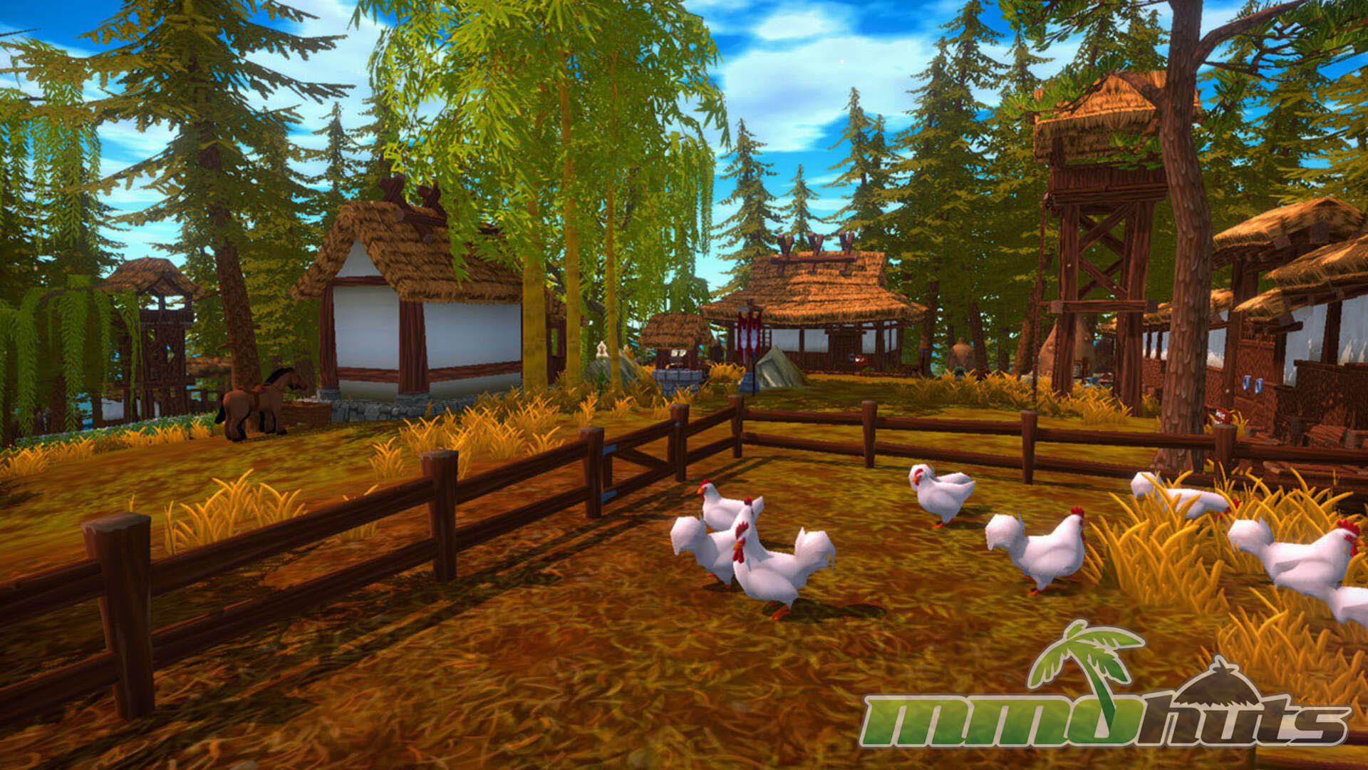 - Farming and Crafting – raise animals and grow crops for food, then develop professions at the forge to produce gear and furnishings.