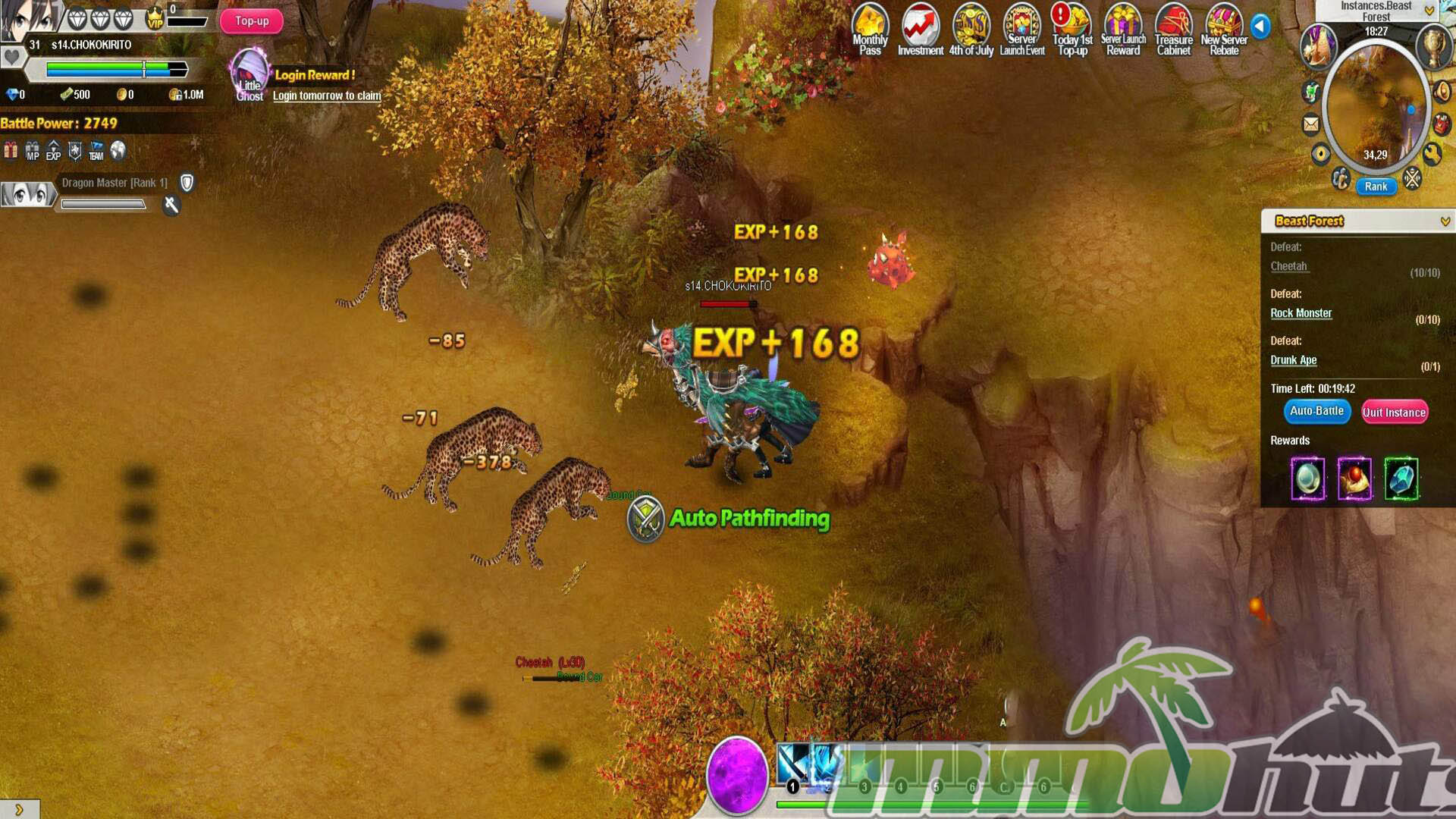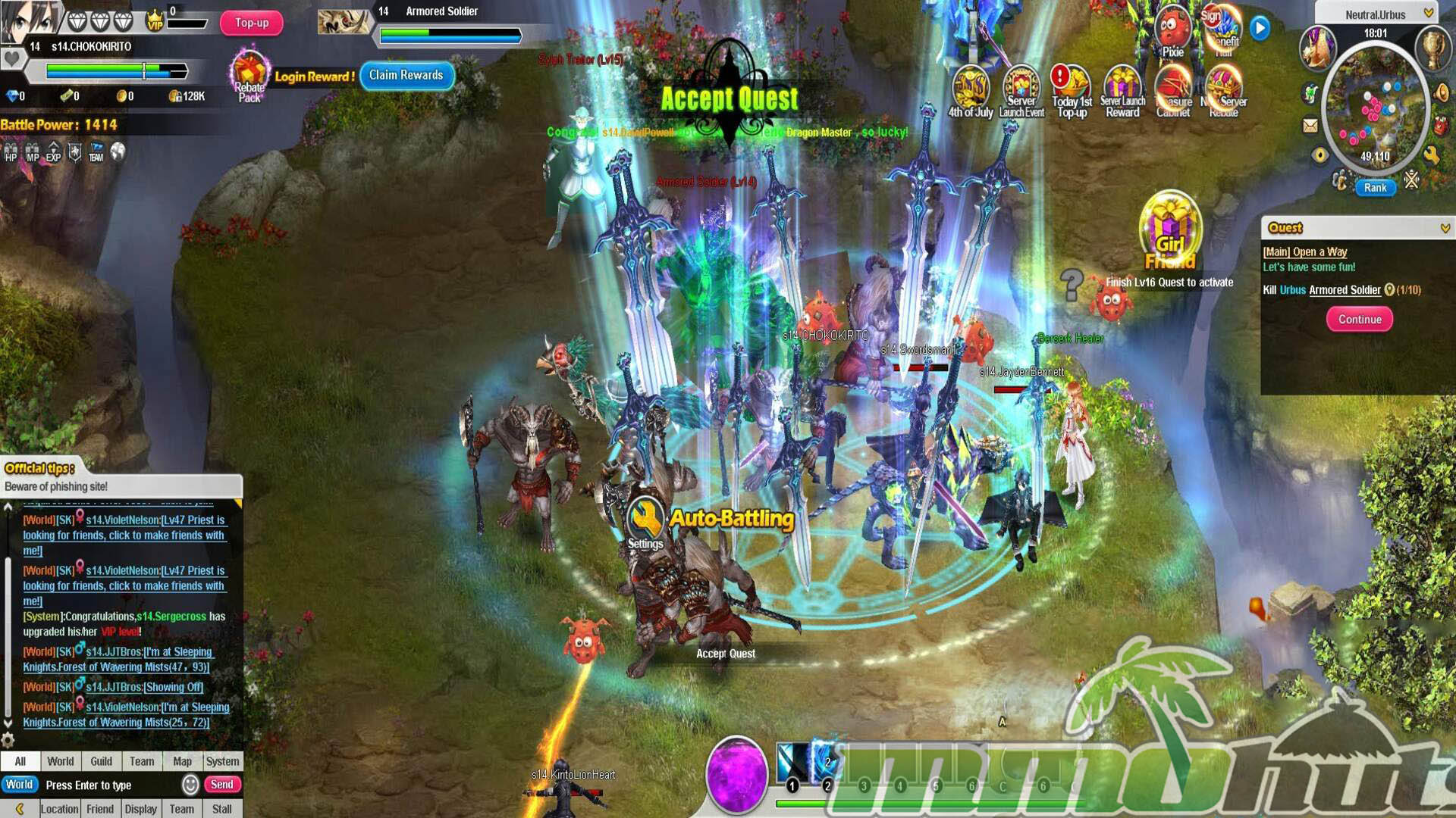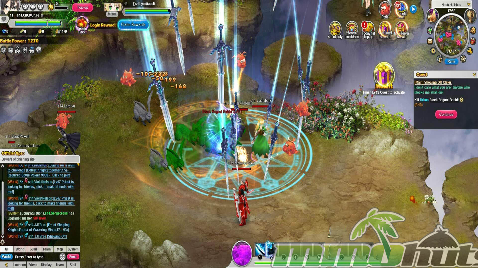 Combat and progression are built around repeatable instances, with your character power rising primarily through equipment improvements and companion growth. The class choices (Knight, Ranger, Priest, Swordsman) cover classic MMO roles, and the skill setup provides enough differentiation to make early decisions feel meaningful. In practice, though, the game often prioritizes speed and efficiency over decision-making, especially when automation is available for fighting and questing. That design makes the game accessible, but it can also undercut the satisfaction of mastering a class since many encounters play out similarly once your power is high enough.