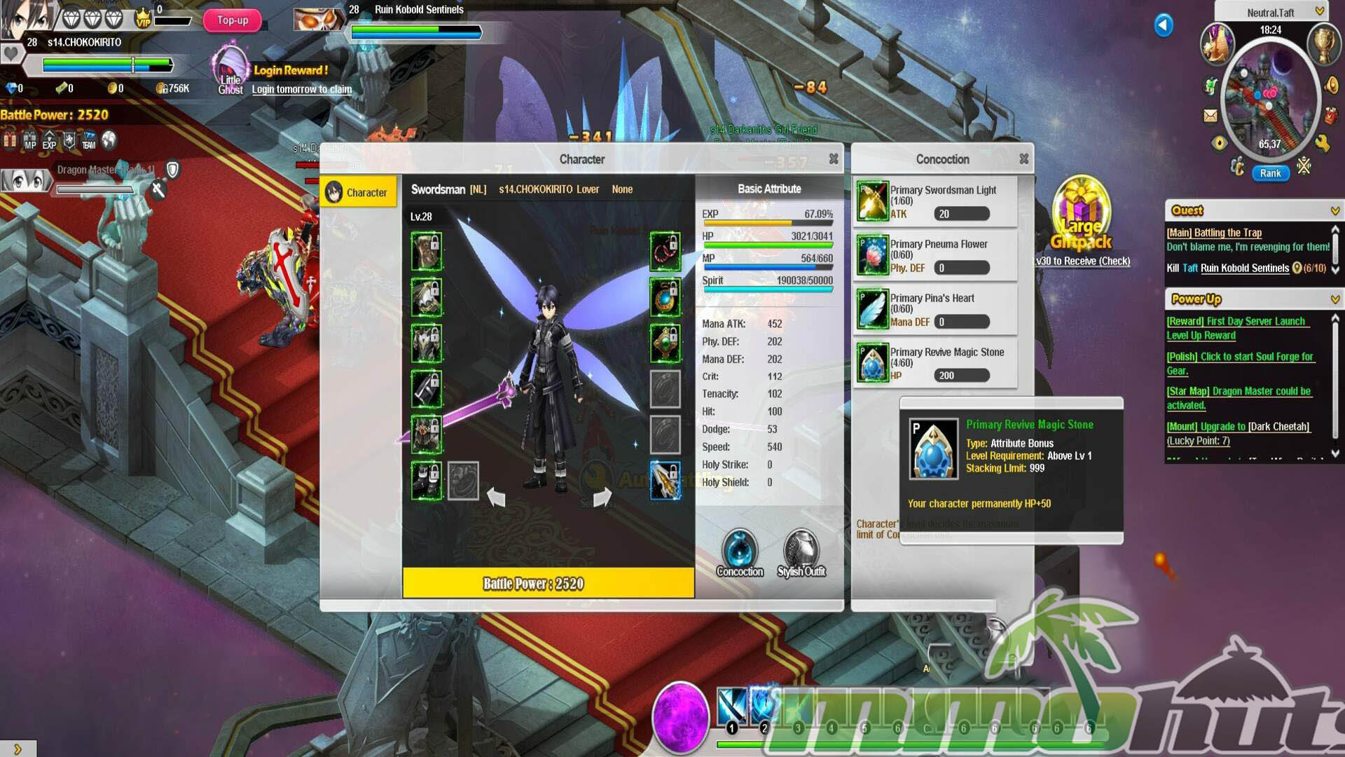 Set in Aincrad, SAO’s Legend is a lightweight, session-friendly MMORPG designed around short bursts of dungeon running and steady gear progression. At the start you choose one of four classes, Knight, Ranger, Priest, or Swordsman, each framed as a recognizable Sword Art Online character and supported by a mix of active abilities and passive boosts. The core loop revolves around entering instances, clearing enemies quickly, and turning the rewards into incremental upgrades.