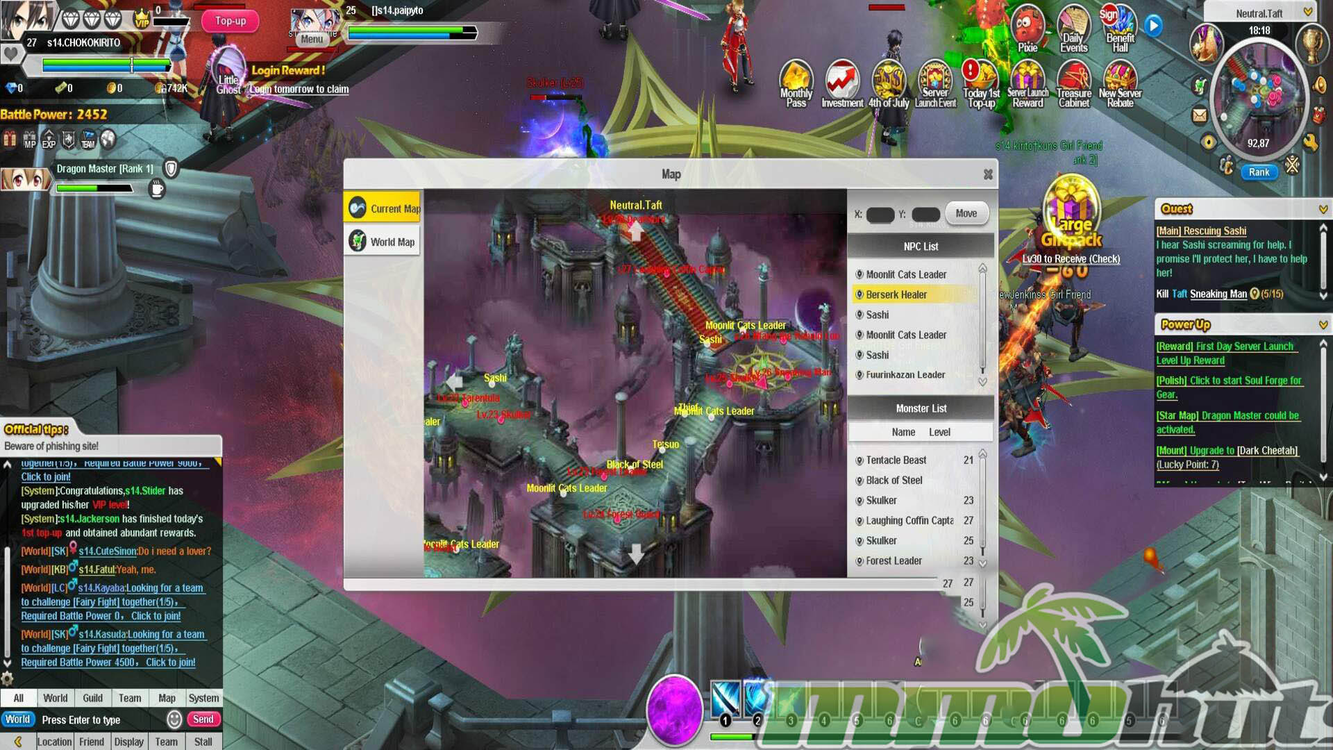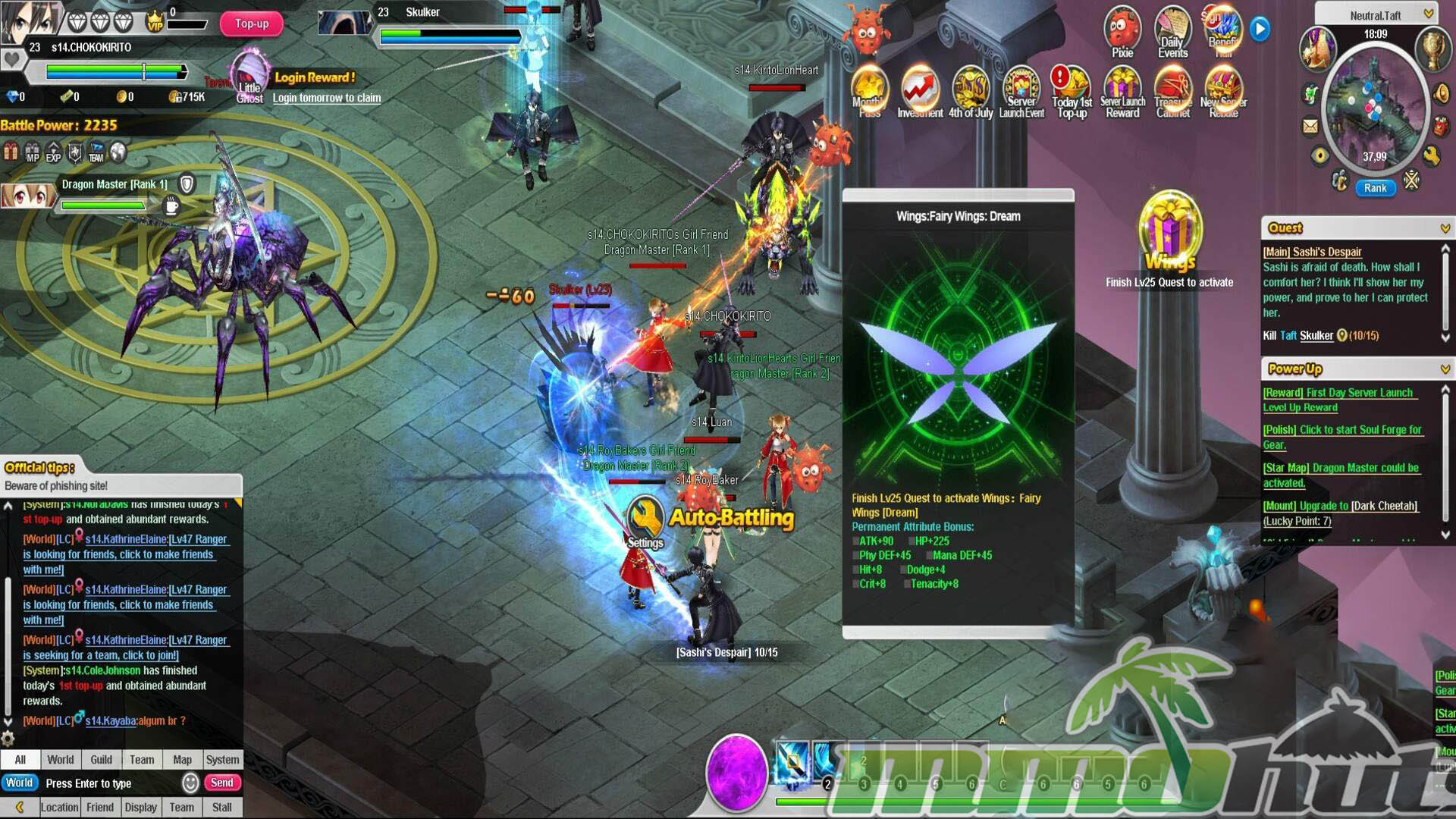 | Publisher: GameSprite Playerbase: Medium Type: Browser MMORPG Release Date: June 24, 2016 Shut Down Date: 2021 Pros: +Four playable options tied to SAO characters, each with their own roles. +Plenty of instanced activities to grind for rewards. +Companion Girl Friend (pet) and a marriage feature. Cons: -Localization quality is rough in places. -Heavy reliance on auto systems reduces hands-on gameplay. -Pay-to-win pressure. |