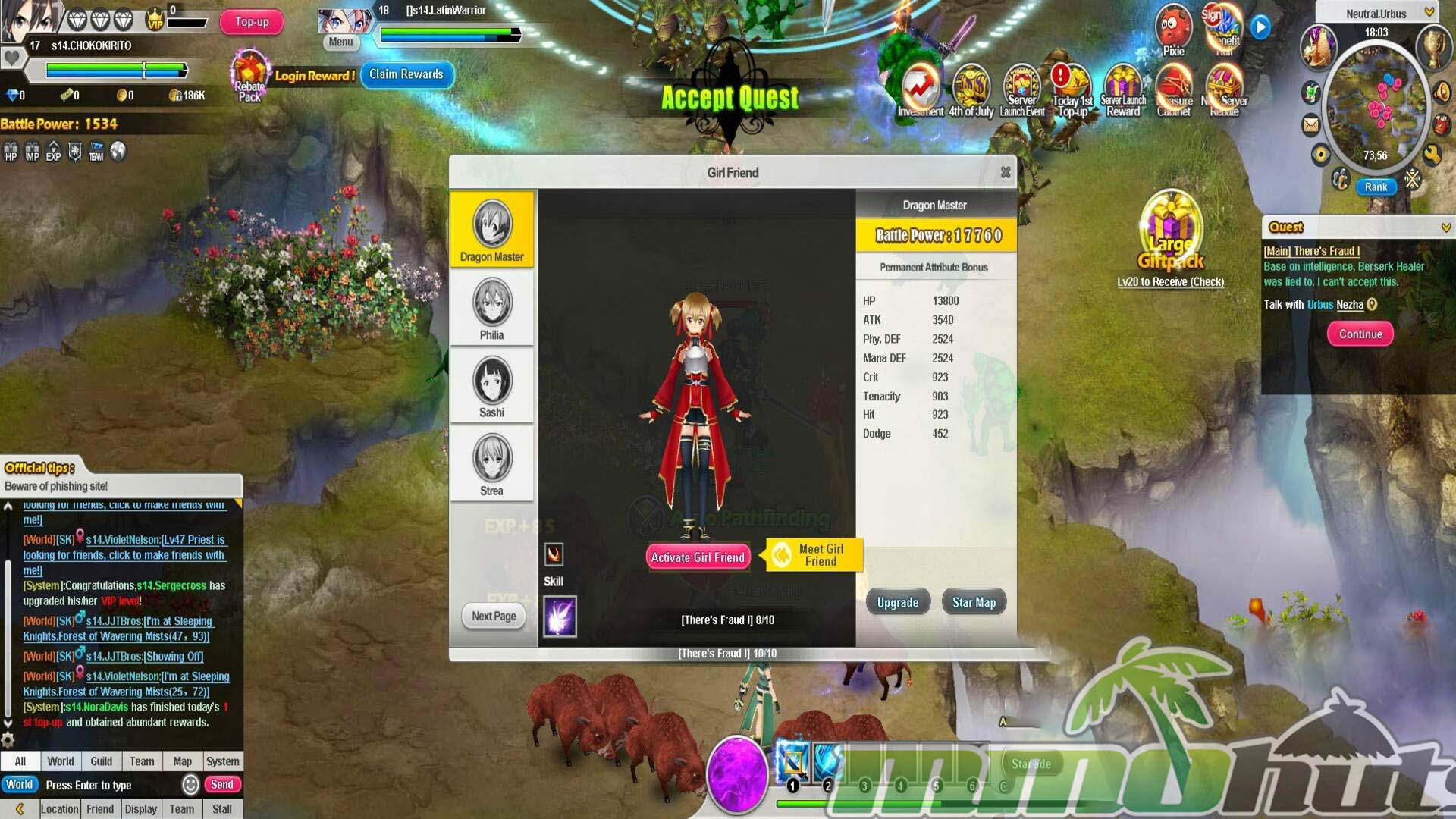 - Girl Friend Companions – collect a Girl Friend (pet) such as Alice or the Dragon Master to accompany you and help in fights.