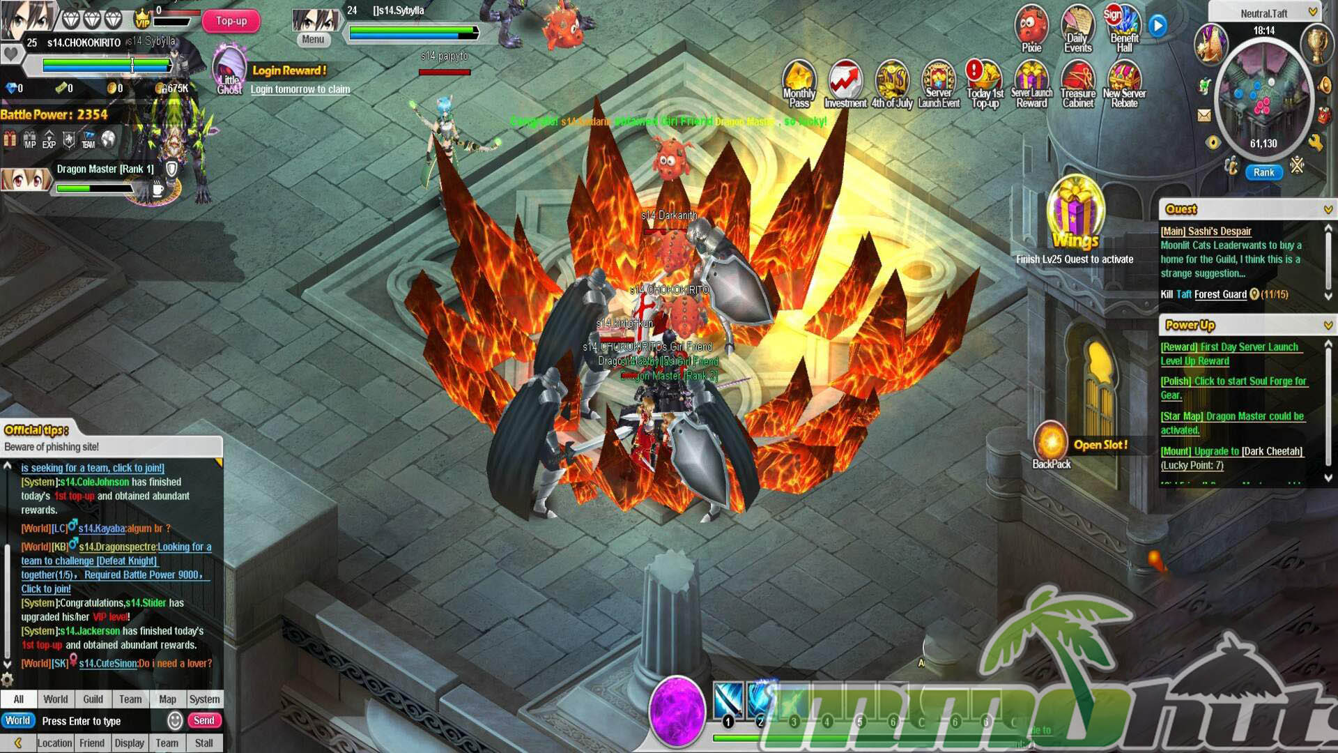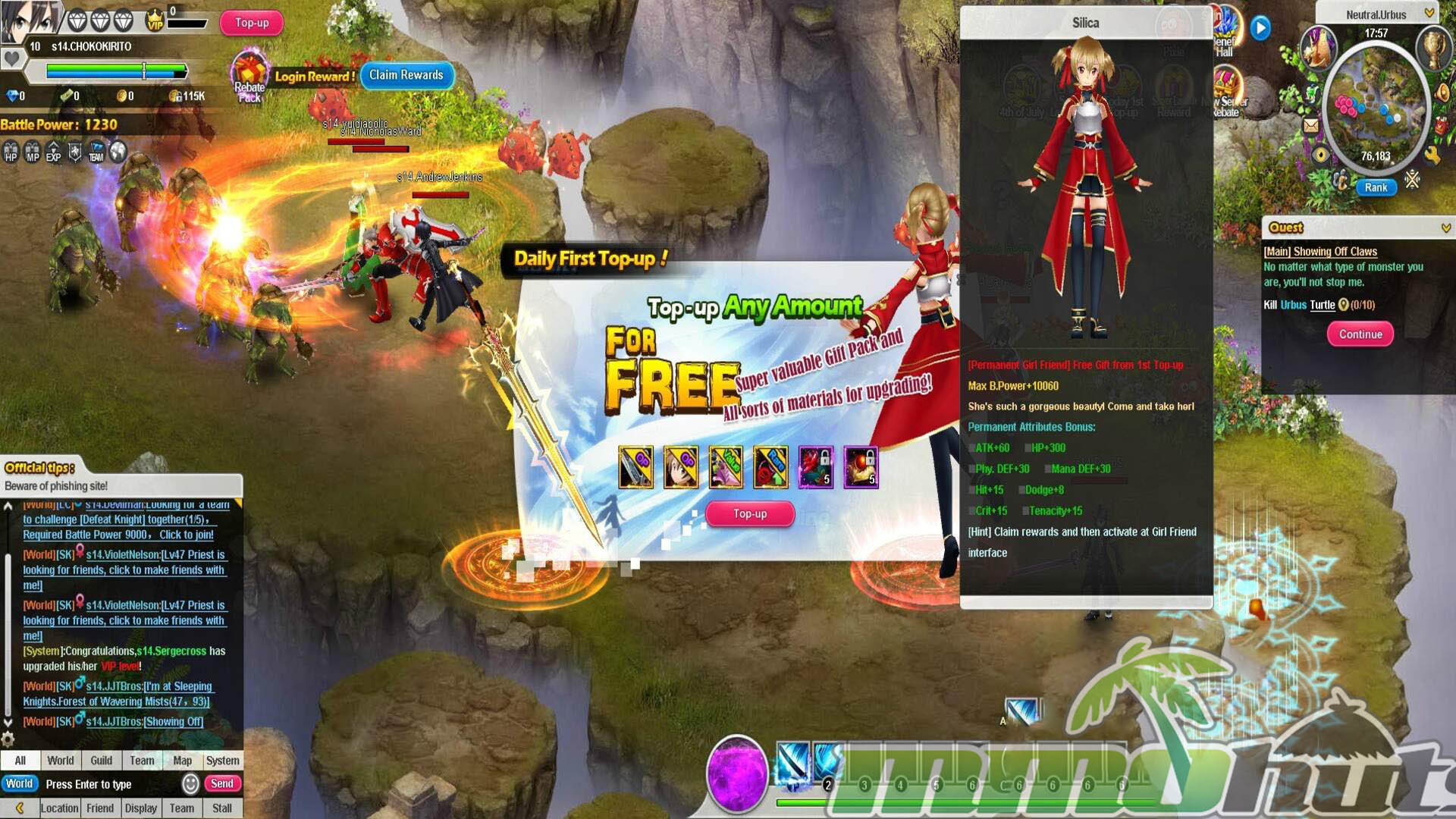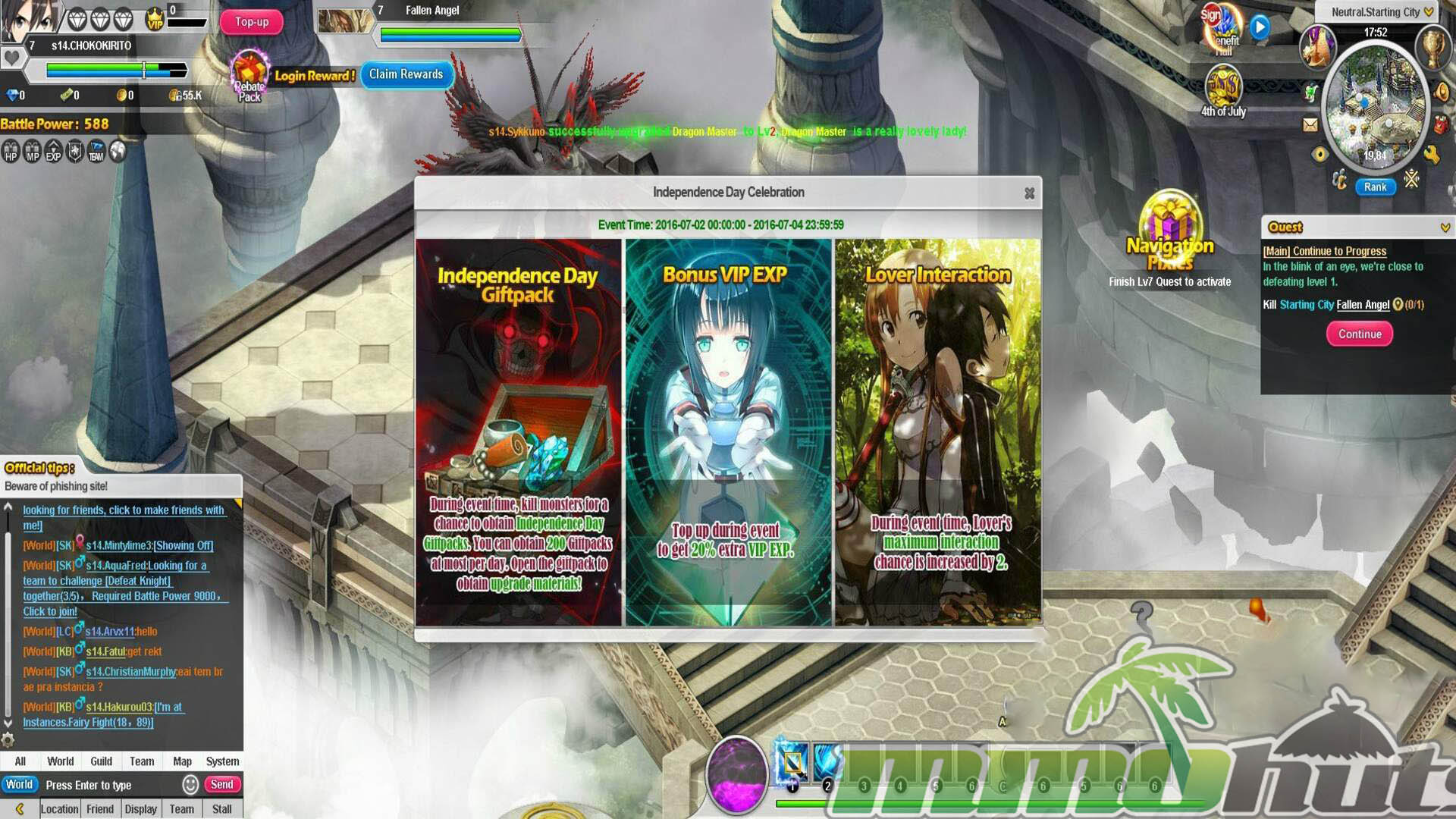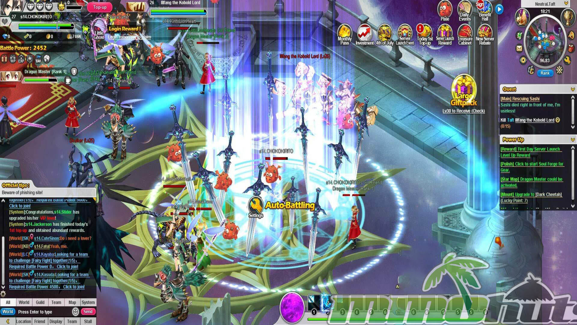 | Publisher: GameSprite Playerbase: Medium Type: Browser MMORPG Release Date: June 24, 2016 Shut Down Date: 2021 Pros: +Four playable options tied to SAO characters, each with their own roles. +Plenty of instanced activities to grind for rewards. +Companion Girl Friend (pet) and a marriage feature. Cons: -Localization quality is rough in places. -Heavy reliance on auto systems reduces hands-on gameplay. -Pay-to-win pressure. |