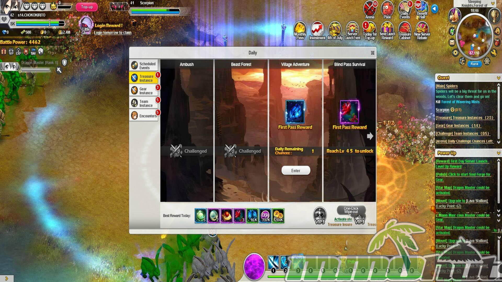 Combat and progression are built around repeatable instances, with your character power rising primarily through equipment improvements and companion growth. The class choices (Knight, Ranger, Priest, Swordsman) cover classic MMO roles, and the skill setup provides enough differentiation to make early decisions feel meaningful. In practice, though, the game often prioritizes speed and efficiency over decision-making, especially when automation is available for fighting and questing. That design makes the game accessible, but it can also undercut the satisfaction of mastering a class since many encounters play out similarly once your power is high enough.