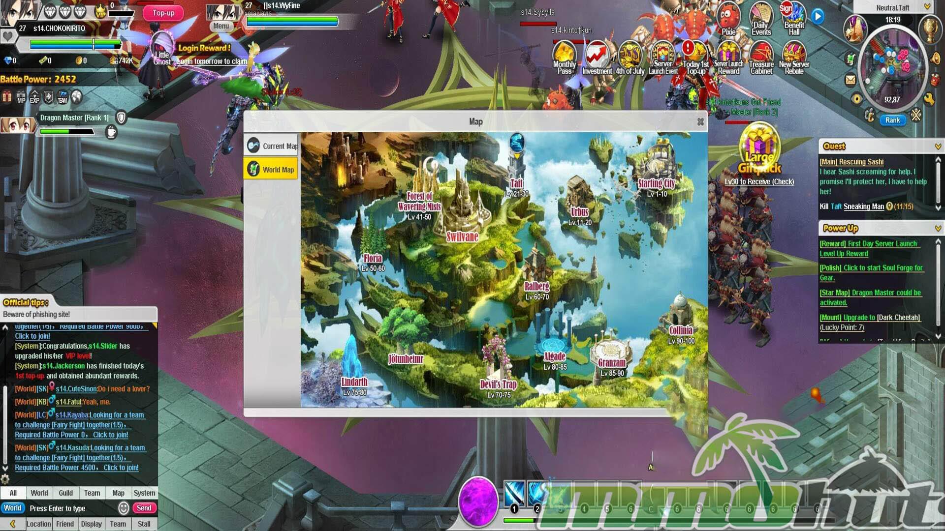 | Publisher: GameSprite Playerbase: Medium Type: Browser MMORPG Release Date: June 24, 2016 Shut Down Date: 2021 Pros: +Four playable options tied to SAO characters, each with their own roles. +Plenty of instanced activities to grind for rewards. +Companion Girl Friend (pet) and a marriage feature. Cons: -Localization quality is rough in places. -Heavy reliance on auto systems reduces hands-on gameplay. -Pay-to-win pressure. |