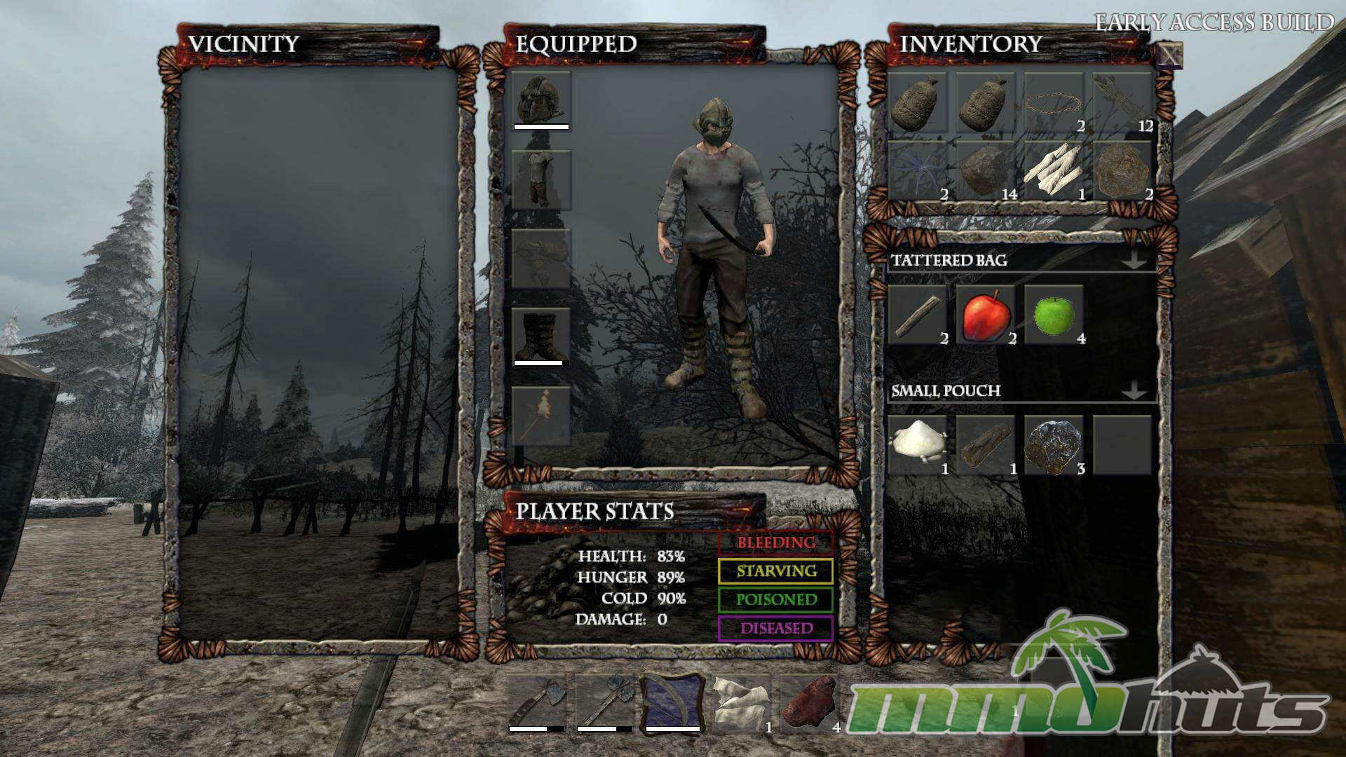On top of that, combat can apply serious negative effects: Bleeding, Poisoned, Diseased, and Starving. These conditions push you toward crafting and foraging even when you would rather be exploring. Bandages matter, certain gathered items can counter poison, and some effects simply force you to play cautiously until they fade. It adds tension, although it can also pull your attention away from the world itself when you feel like you are constantly checking UI elements.