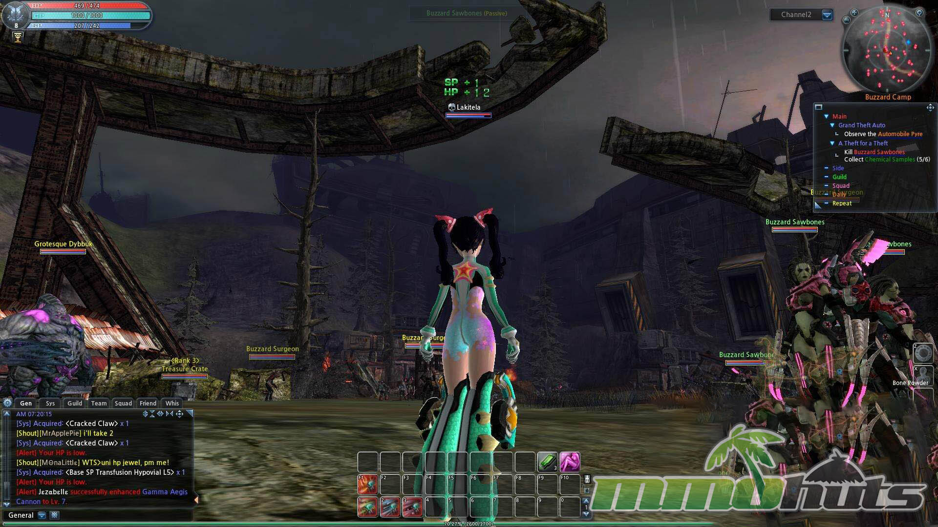 Although Scarlet Blade markets itself with a sci-fi label, much of the moment-to-moment questing can resemble a standard fantasy MMO routine, roaming fields, clearing creatures, and moving between hubs. The most overt sci-fi flavor tends to come from the towns and mech transformations rather than the average outdoor objectives. Questing is also very guided, with convenience features that allow you to click the tracker and be led directly to targets, which reduces friction but can also make leveling feel overly automated.