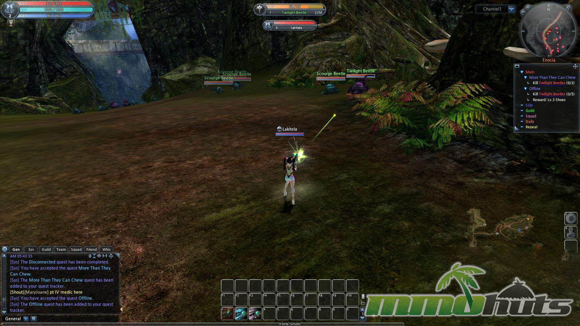 Progression lands in the middle of the genre spectrum. The tutorial can be cleared fairly quickly, and within roughly an hour you are settling into the starter town, Enocia Glen, learning the rhythm of quest turn-ins, fast travel, and basic economy features like the market. The overall structure is familiar to anyone who has played free-to-play MMOs from the early 2010s.