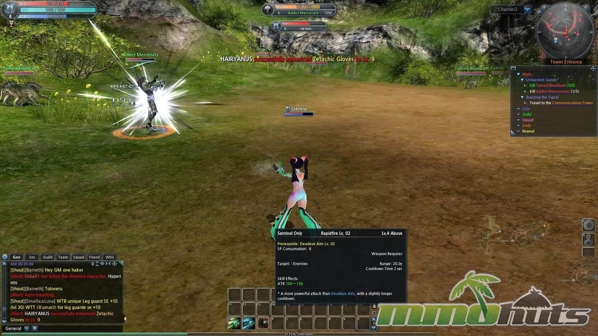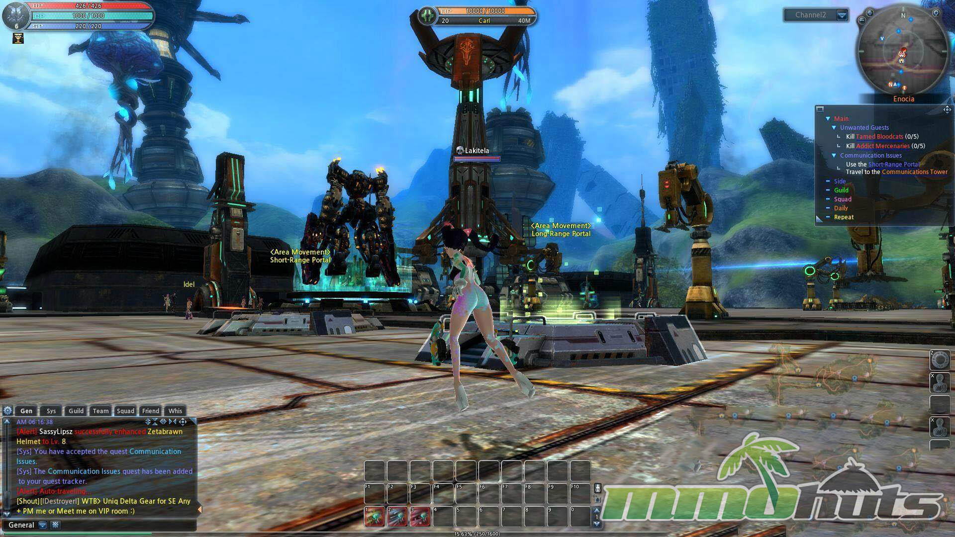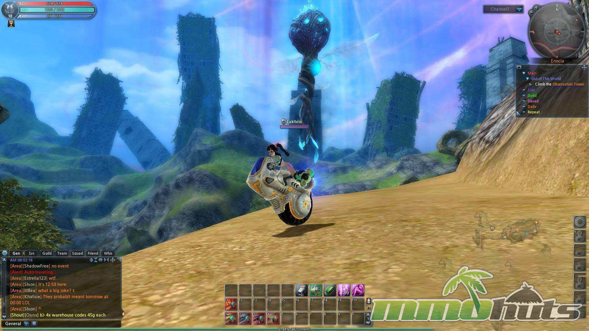 Progression lands in the middle of the genre spectrum. The tutorial can be cleared fairly quickly, and within roughly an hour you are settling into the starter town, Enocia Glen, learning the rhythm of quest turn-ins, fast travel, and basic economy features like the market. The overall structure is familiar to anyone who has played free-to-play MMOs from the early 2010s.