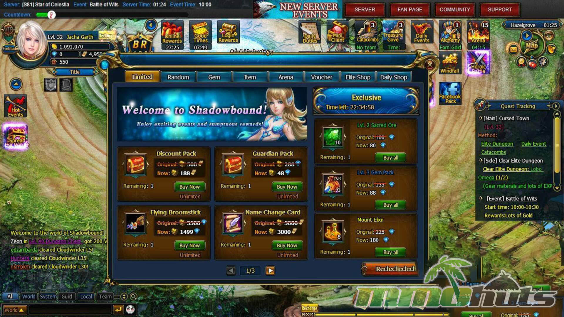 The main loop is familiar MMORPG structure: accept quests, move between NPCs, clear objectives, and collect rewards that unlock features over time. In the opening hours, quest text also doubles as a tutorial, explaining systems as they become available. If you intend to play efficiently, it is worth paying attention early, because many of Shadowbound’s menus and currencies can be confusing if you skip the guidance.