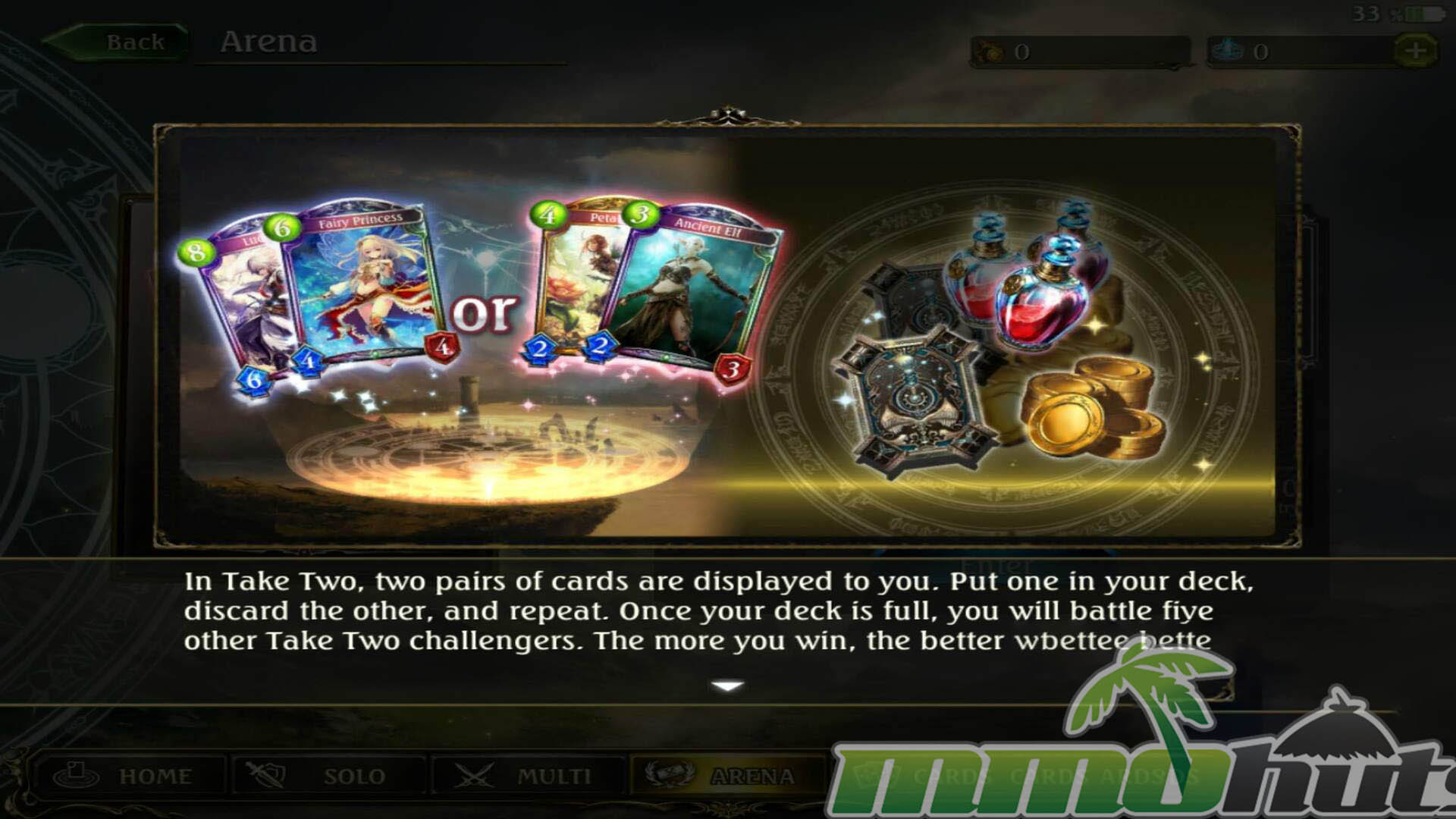 Take Two follows the familiar “build a deck from limited choices, then play a run” structure popularized by arena modes in other CCGs. Entry requires tickets, which you can earn through play or purchase. The mode is a good change of pace when you are missing key cards for constructed decks, and it also pushes you to learn class fundamentals instead of relying on a single refined list.