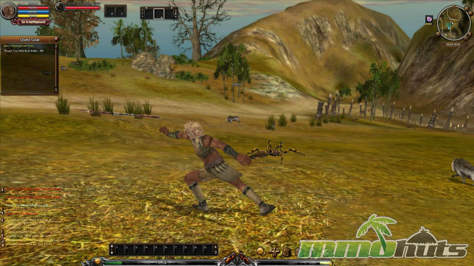 Once you are in, the opening flow is traditional: accept quests, clear nearby monsters, and follow the breadcrumb trail between NPCs. New characters also receive a starter gift box with appropriate armor and a selection of weapons to test, which helps the early game feel less bare. Controls are standard for a tab-target MMO of its time, you can move with WASD or by clicking the terrain, and skills are bound to number keys on a hotbar.