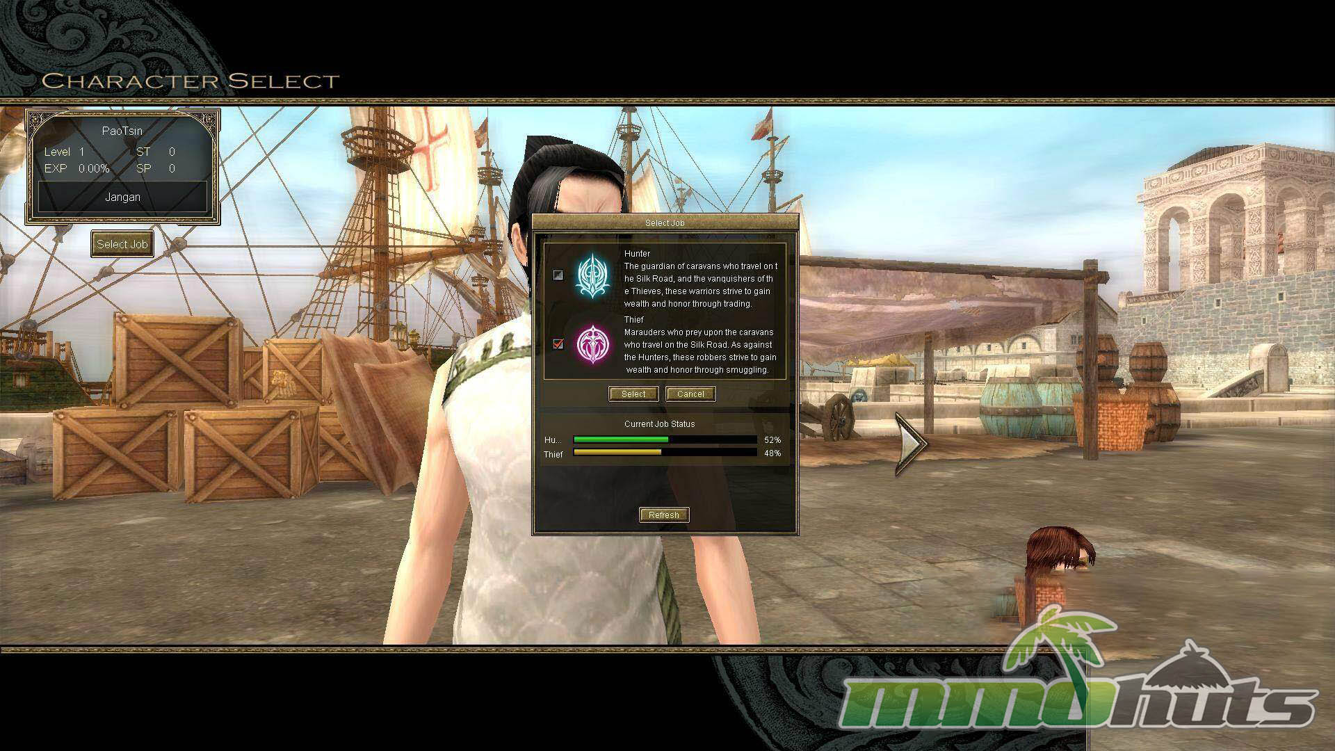 Silkroad-R’s PvP identity is driven less by faction warfare and more by the job system. After character creation, you can align with the thief or hunter role (and merchants sit at the center of the risk-reward loop). The downside is that the decision is tied to your account. Switching requires either paying 10 million gold or starting fresh with a new account, which makes the choice more permanent than it needs to be.