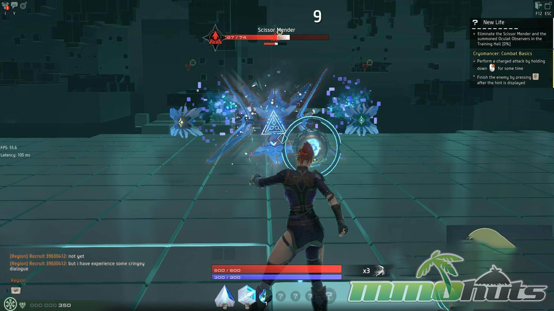 Skyforge’s class system is one of its more interesting hooks. Although the game eventually offers thirteen classes, free players only start with three in the training hall, accompanied by background music that sounds like it was inspired by Deus Ex. The initial lineup consists of the Cryomancer (ranged magic DPS), Paladin (melee tank), and Lightbinder (support focused hybrid). Outside of combat you can swap between any unlocked class at will, similar to how jobs work in some other MMORPGs. Each starting class feels distinct and unlocks more impressive abilities as you progress, and I regularly rotated between them before settling on Cryomancer as my favorite for its flashy, cinematic spell effects.