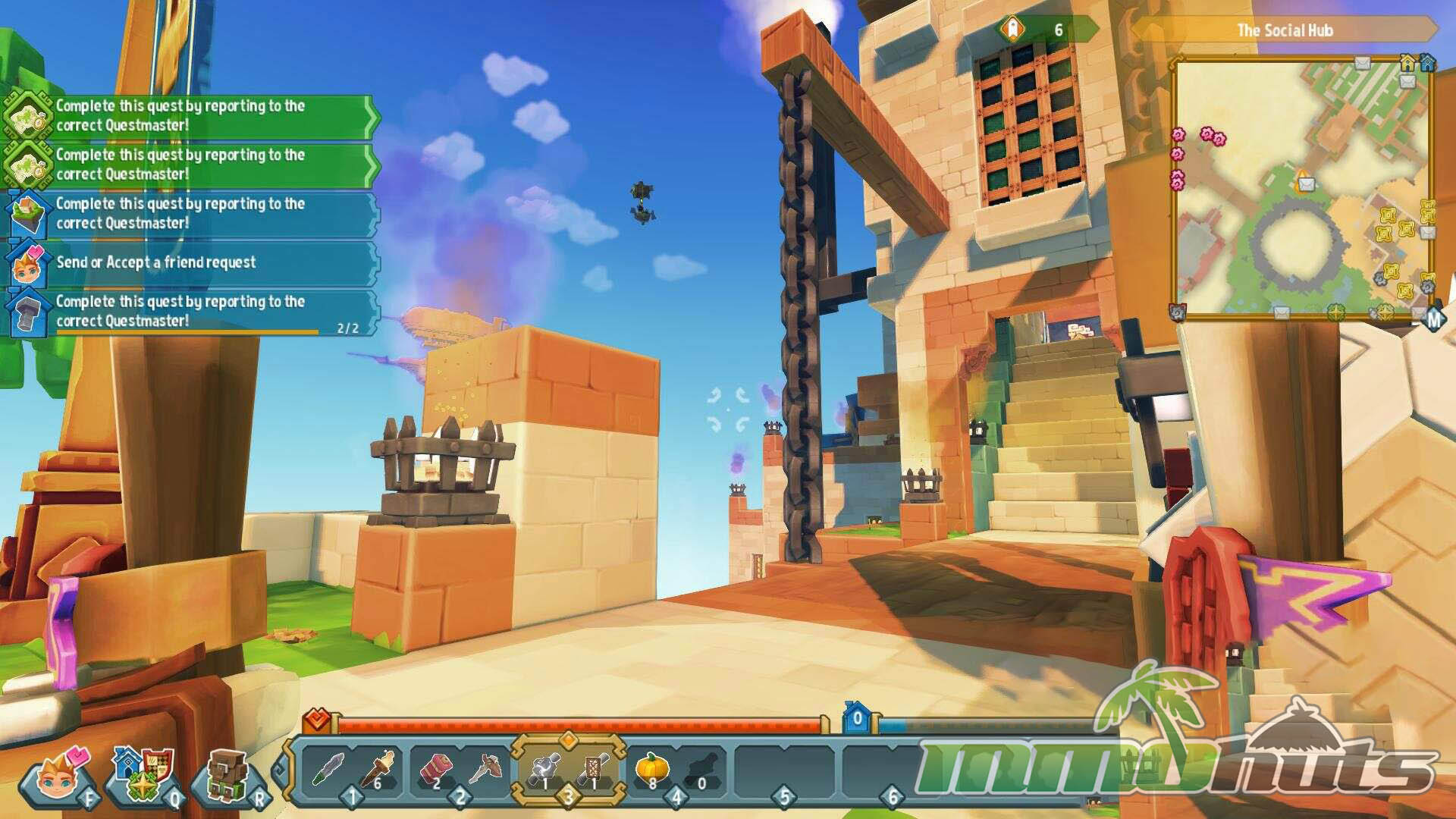 SkySaga also leans into easy social access. Like other hub-based sandbox MMOs, it uses a central meeting area to help players group up without friction. You can team up to clear objectives faster, share the workload of gathering, or simply show off builds. For players who want direct competition, the game includes arena PvP, keeping combat separate from the creative home-building loop. Development for Skysaga ceased on August 22, 2017.