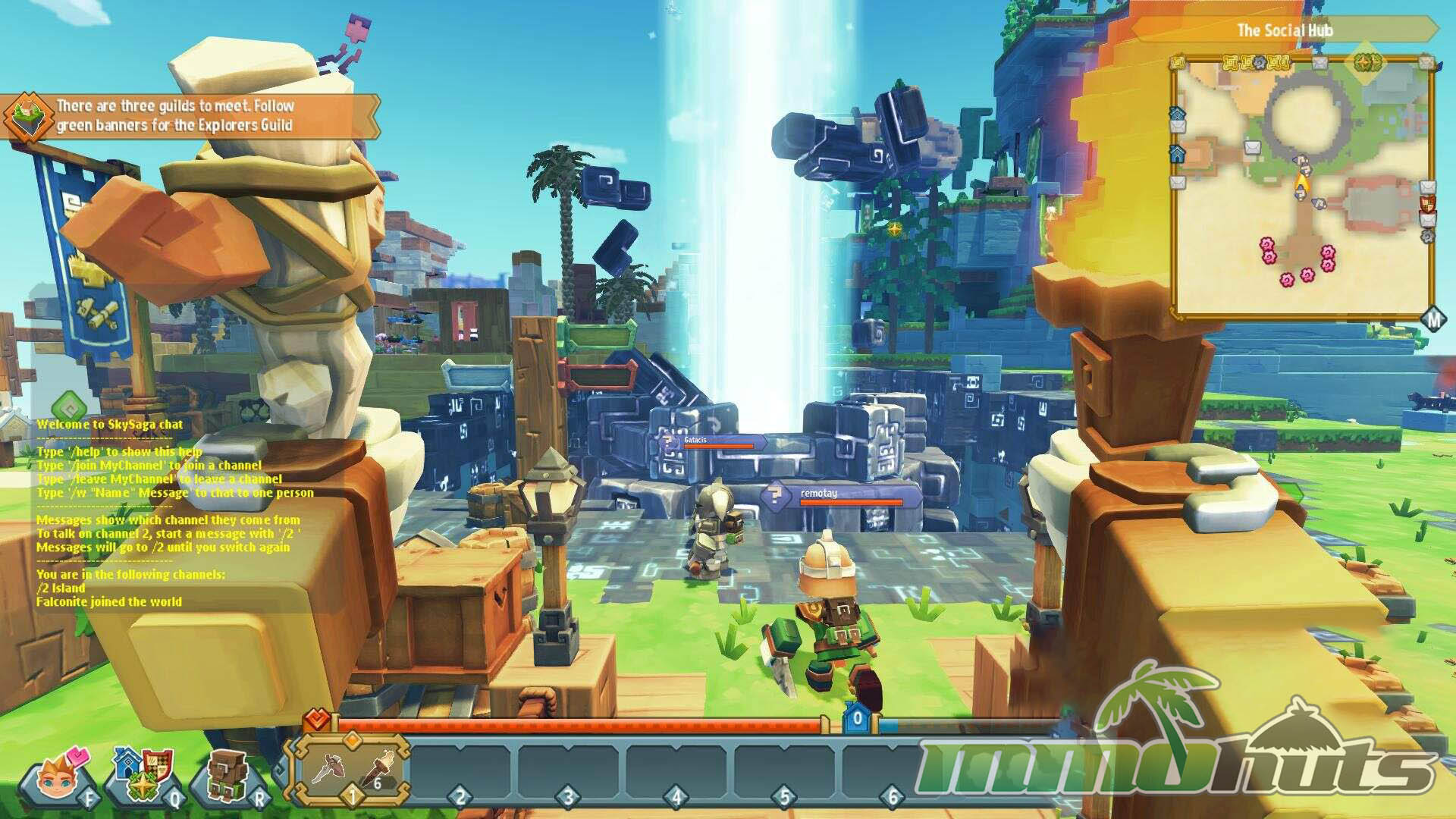 SkySaga also leans into easy social access. Like other hub-based sandbox MMOs, it uses a central meeting area to help players group up without friction. You can team up to clear objectives faster, share the workload of gathering, or simply show off builds. For players who want direct competition, the game includes arena PvP, keeping combat separate from the creative home-building loop. Development for Skysaga ceased on August 22, 2017.