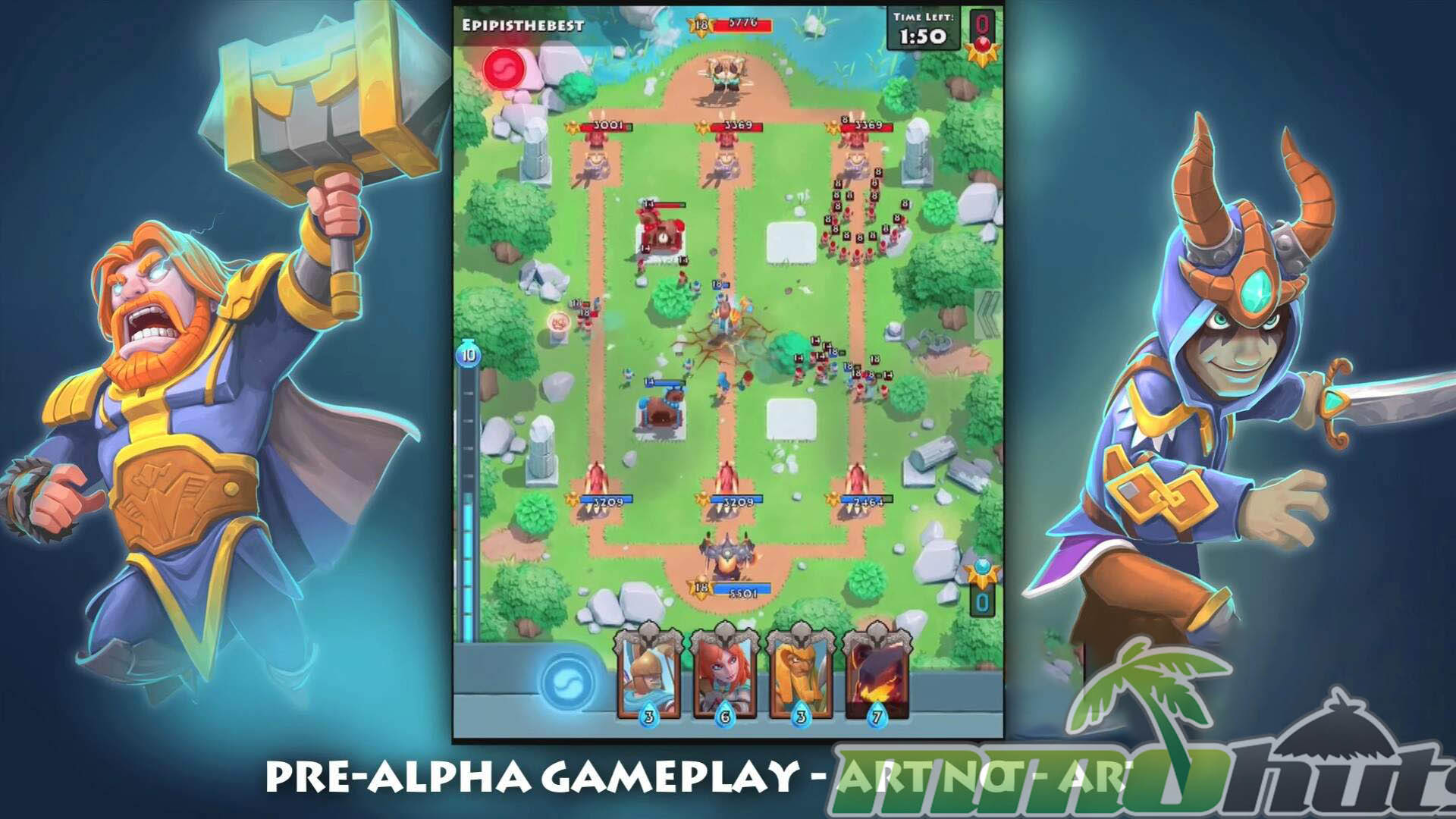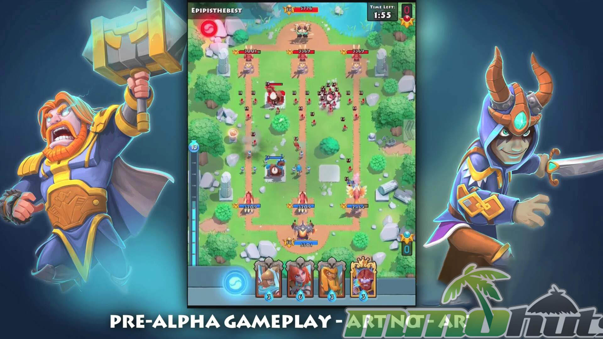 - Real-Time Arena Combat – matches play out live on a three-lane battlefield where reactions and tempo matter.