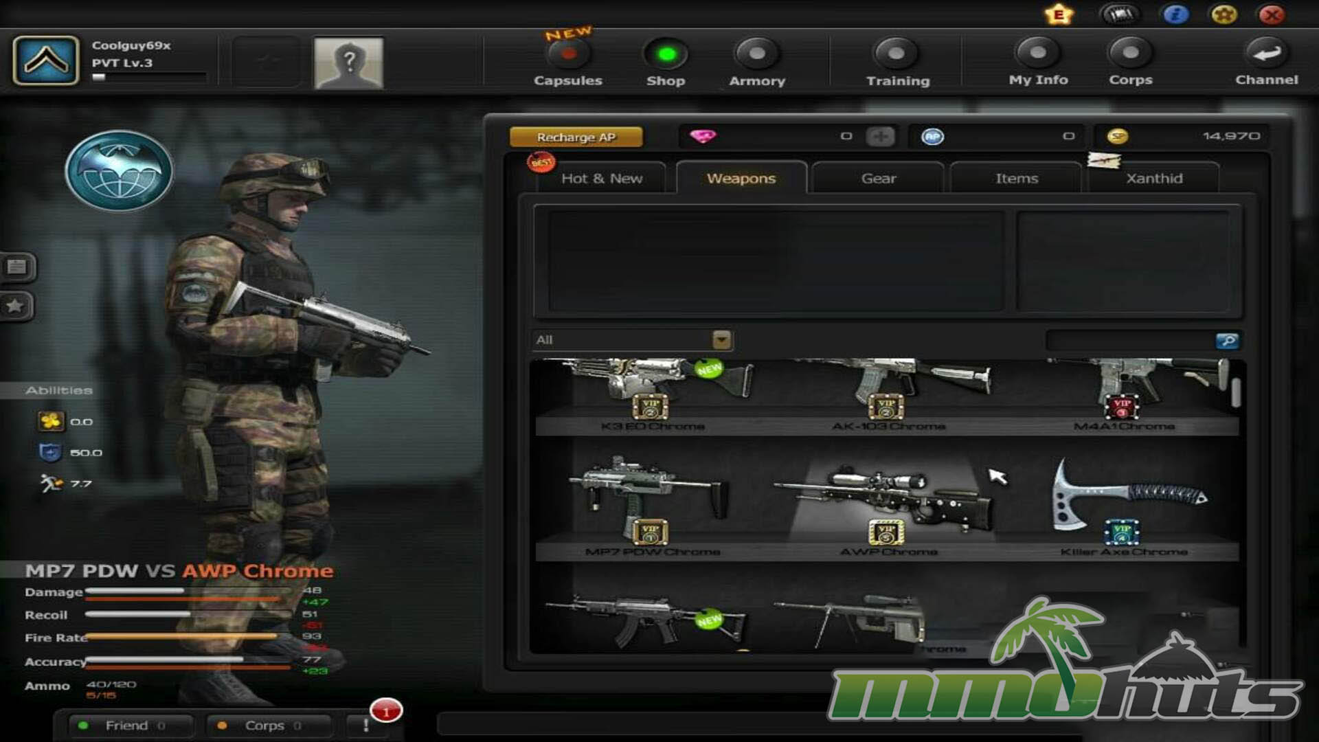 Weapons can also be upgraded up to five ranks through usage-based objectives and achievements tied to that weapon. For example, you might push an AWP upgrade by getting a specific number of kills or headshots. These upgrades are intentionally incremental, they are more about rewarding dedication than creating a massive power gap. At higher ranks you may notice small quality-of-life improvements such as slightly better handling or capacity, but it does not turn a weapon into something unrecognizable.