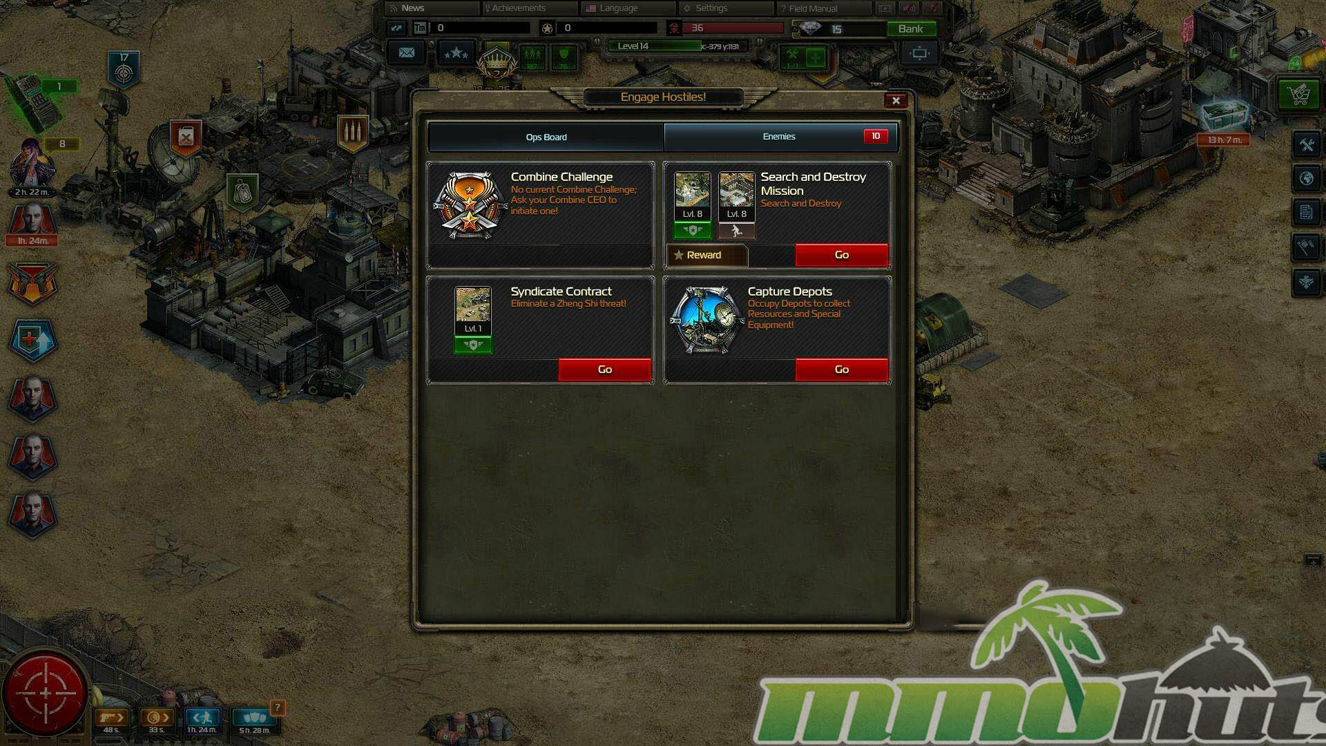 - Combines – team up with other players to organize larger operations and long-term rivalry.