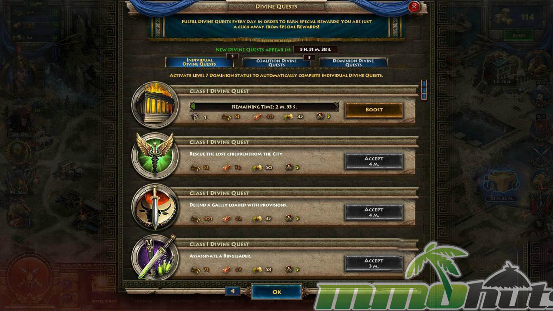 As with most browser strategy titles, the opening hours are about establishing the basics: constructing key buildings, upgrading production, and learning how the interface handles queues and timers. SWoE leans on voiced prompts and quest popups to move you along, which makes the early experience clearer than many older games in the genre. The quest line frequently nudges you toward core actions such as placing new structures, improving existing ones, and recruiting specific unit types. Those tasks pay out resources and experience, and at times award Drachmas, the premium currency that can also be purchased.