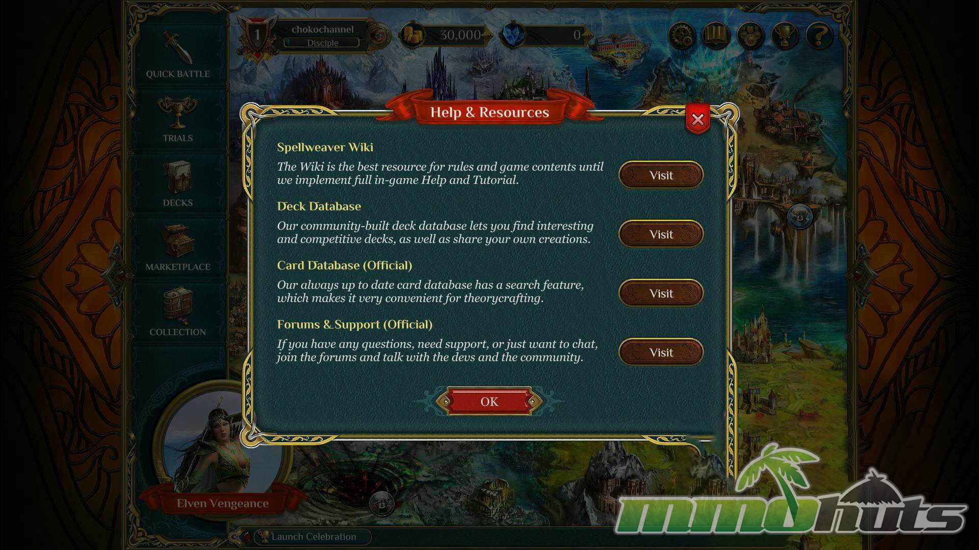 Spellweaver is an online collectible card game set in a classic high-fantasy world, built around choosing a deck identity and outplaying opponents through resource management and battlefield positioning. Players select from 7 unique deck paths (examples include Spectral Power and Rage), then take on AI opponents, queue for casual matches, or enter ranked matchmaking where you are paired based on your competitive standing.