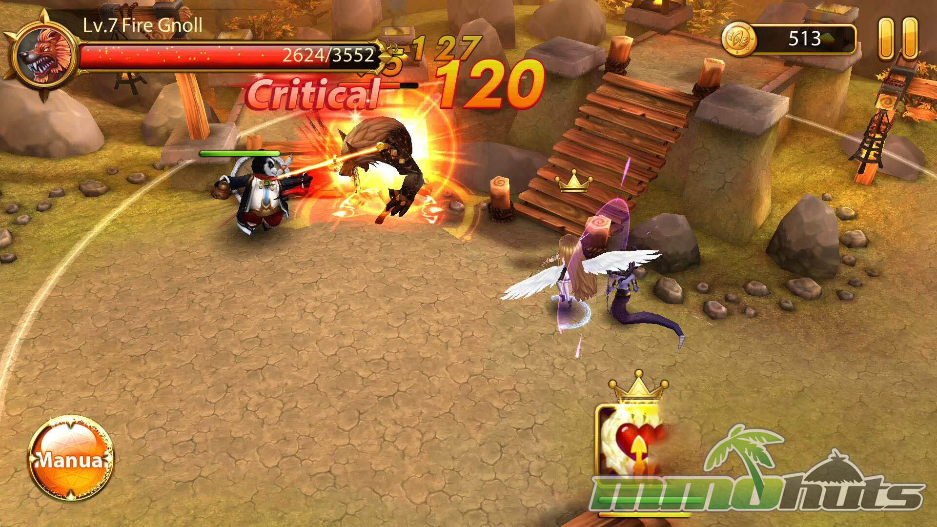 In battle you could field up to four Heroes, but direct control largely centered on your leader while the rest followed and fought on their own. Movement was handled through taps to reposition, and basic attacks triggered automatically when targets were in range. You could also tap specific enemies to focus them, which mattered more than it first appeared.