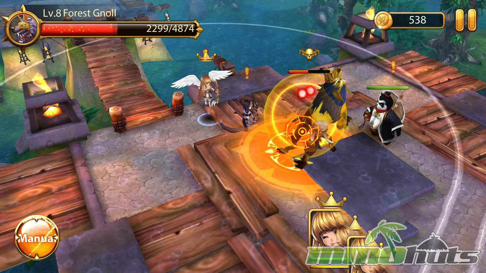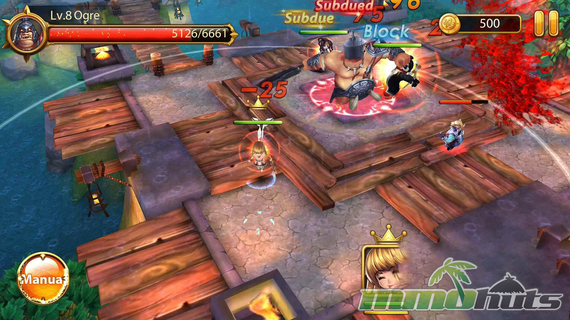 In battle you could field up to four Heroes, but direct control largely centered on your leader while the rest followed and fought on their own. Movement was handled through taps to reposition, and basic attacks triggered automatically when targets were in range. You could also tap specific enemies to focus them, which mattered more than it first appeared.