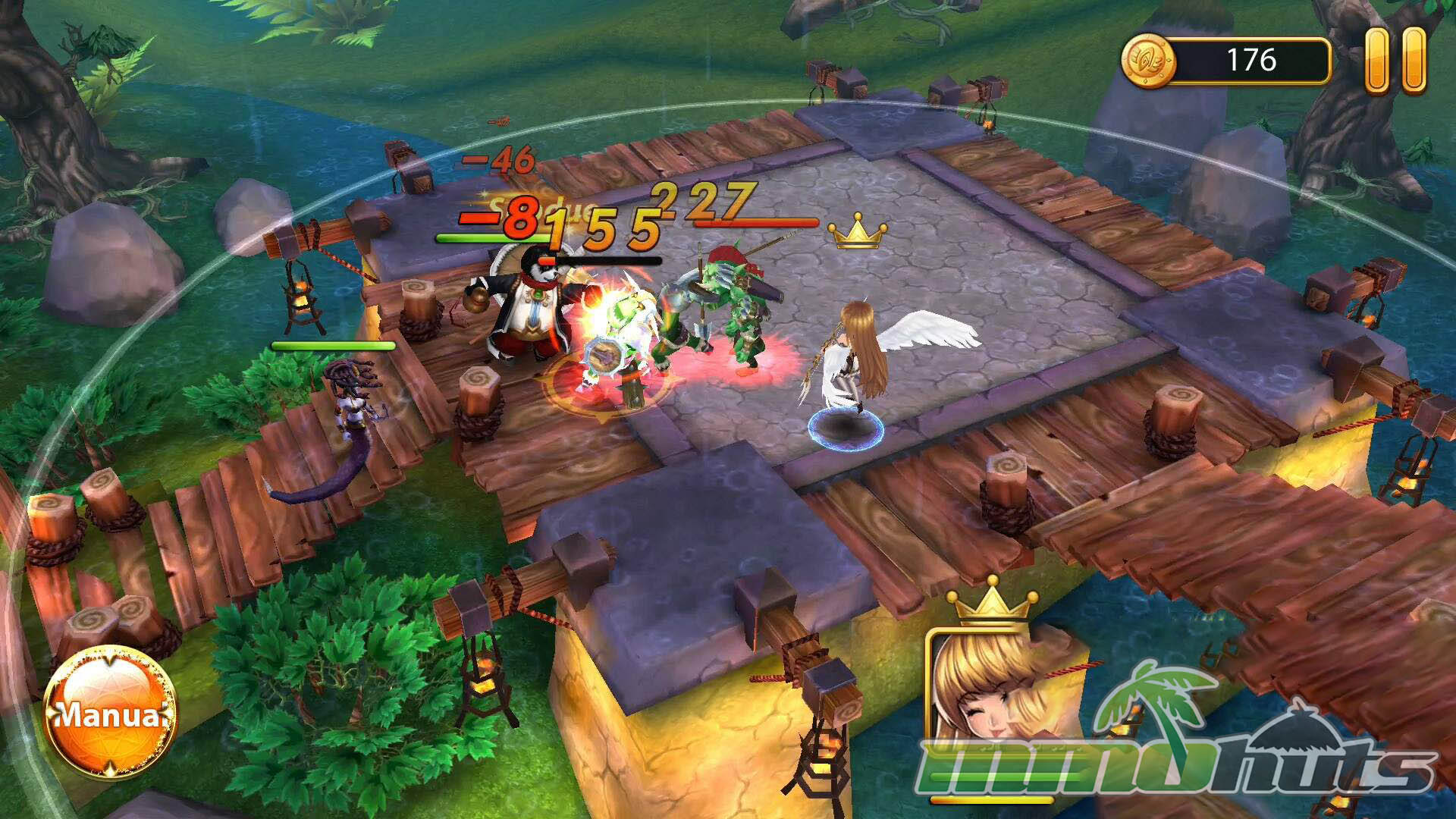Combat blended tap-based movement and target selection with an optional Auto mode, while still asking you to trigger Hero skills at the right moments. Alongside story stages, the game offered asynchronous Arena battles for rank-based rewards, plus timed Boss Raids that appeared as random encounters and asked for more hands-on play.