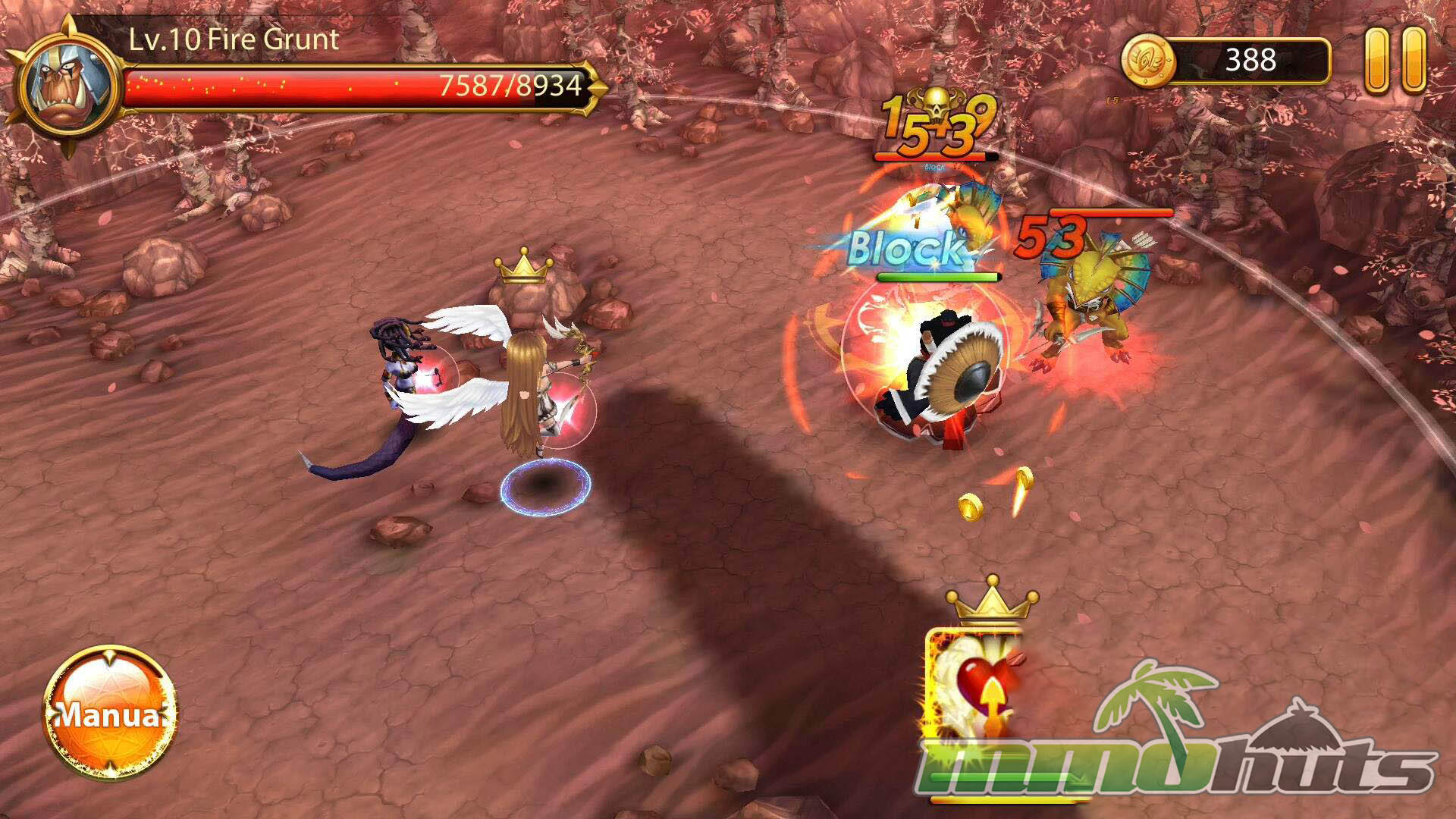 In battle you could field up to four Heroes, but direct control largely centered on your leader while the rest followed and fought on their own. Movement was handled through taps to reposition, and basic attacks triggered automatically when targets were in range. You could also tap specific enemies to focus them, which mattered more than it first appeared.