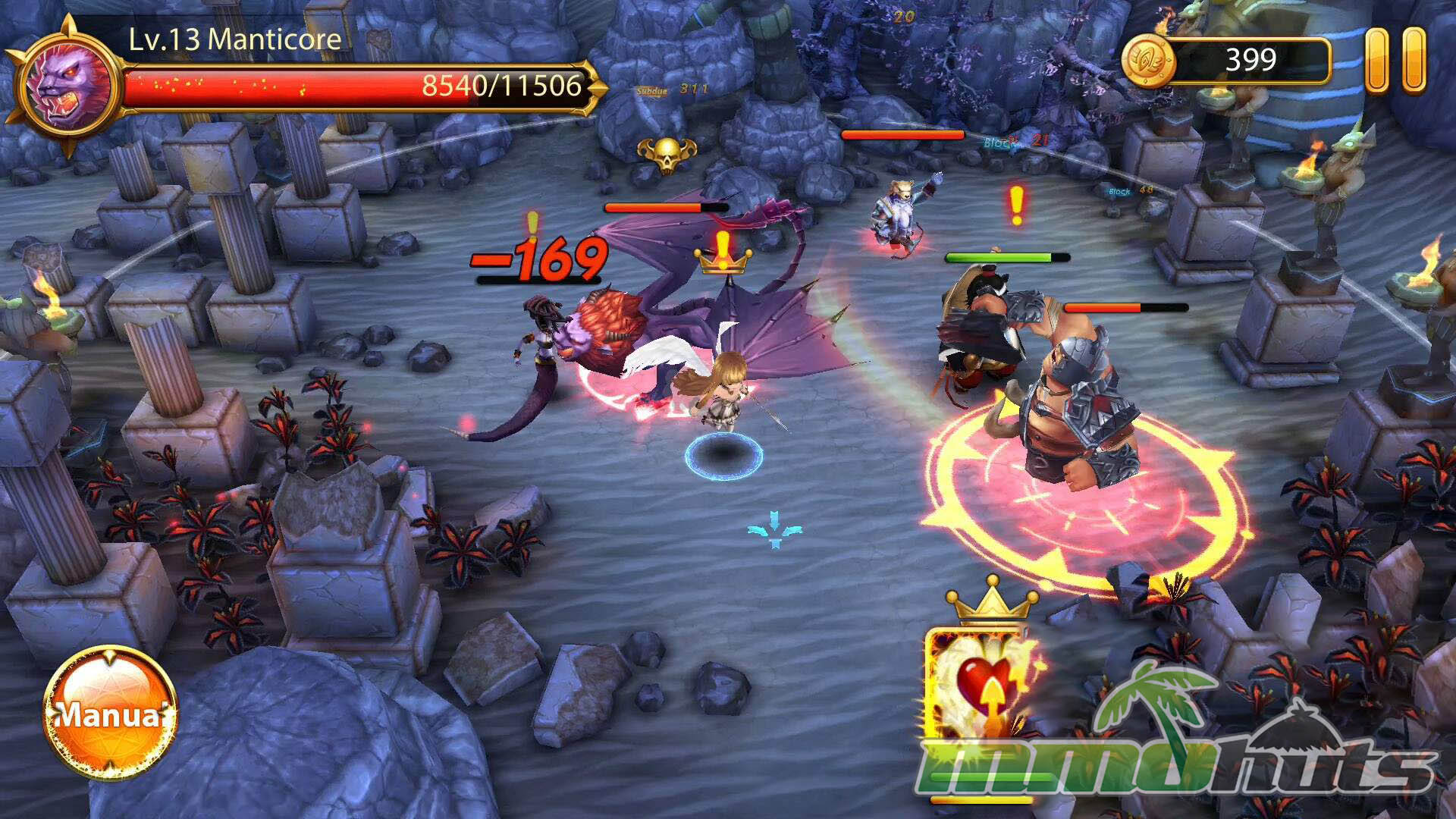 In battle you could field up to four Heroes, but direct control largely centered on your leader while the rest followed and fought on their own. Movement was handled through taps to reposition, and basic attacks triggered automatically when targets were in range. You could also tap specific enemies to focus them, which mattered more than it first appeared.
