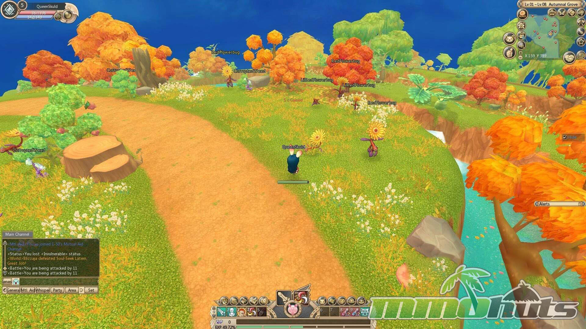 Questing tends to move you along at a steady clip, often changing scenery before a zone has time to wear out its welcome. That brisk pacing is one of the reasons the early game can feel pleasant even if the objectives are conventional. Dialogue scenes add a small touch of personality, as NPC interactions trigger cute on-screen emotion exchanges that fit the game’s tone. Leveling is quick, and each level grants a skill point to spend in a straightforward skill tree. The downside is that builds do not branch dramatically, so two characters of the same class often end up looking similar in function.
