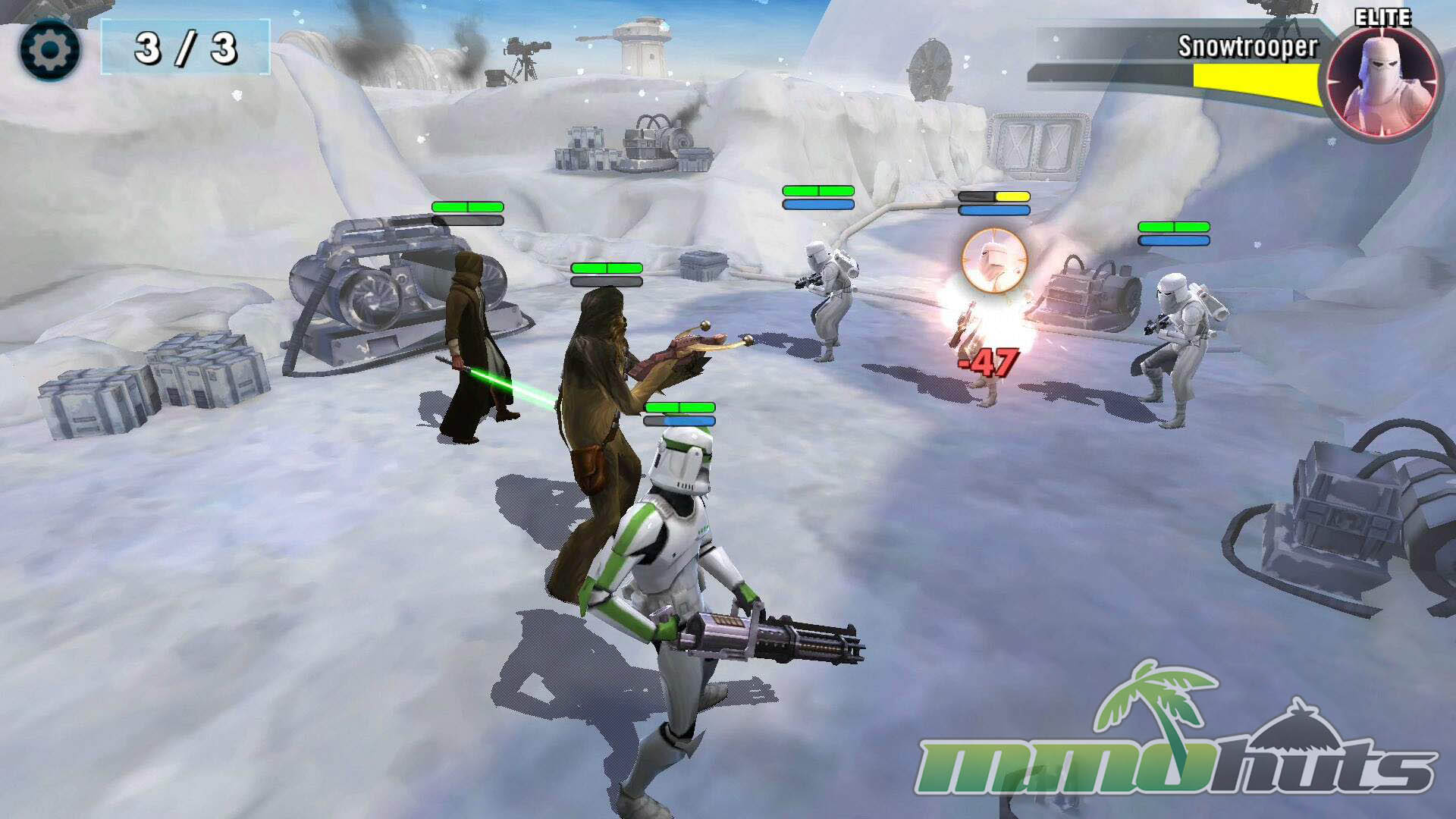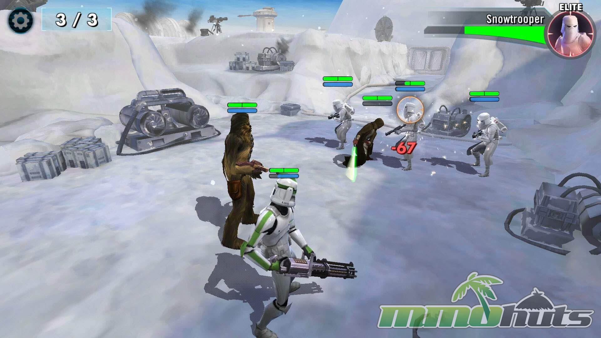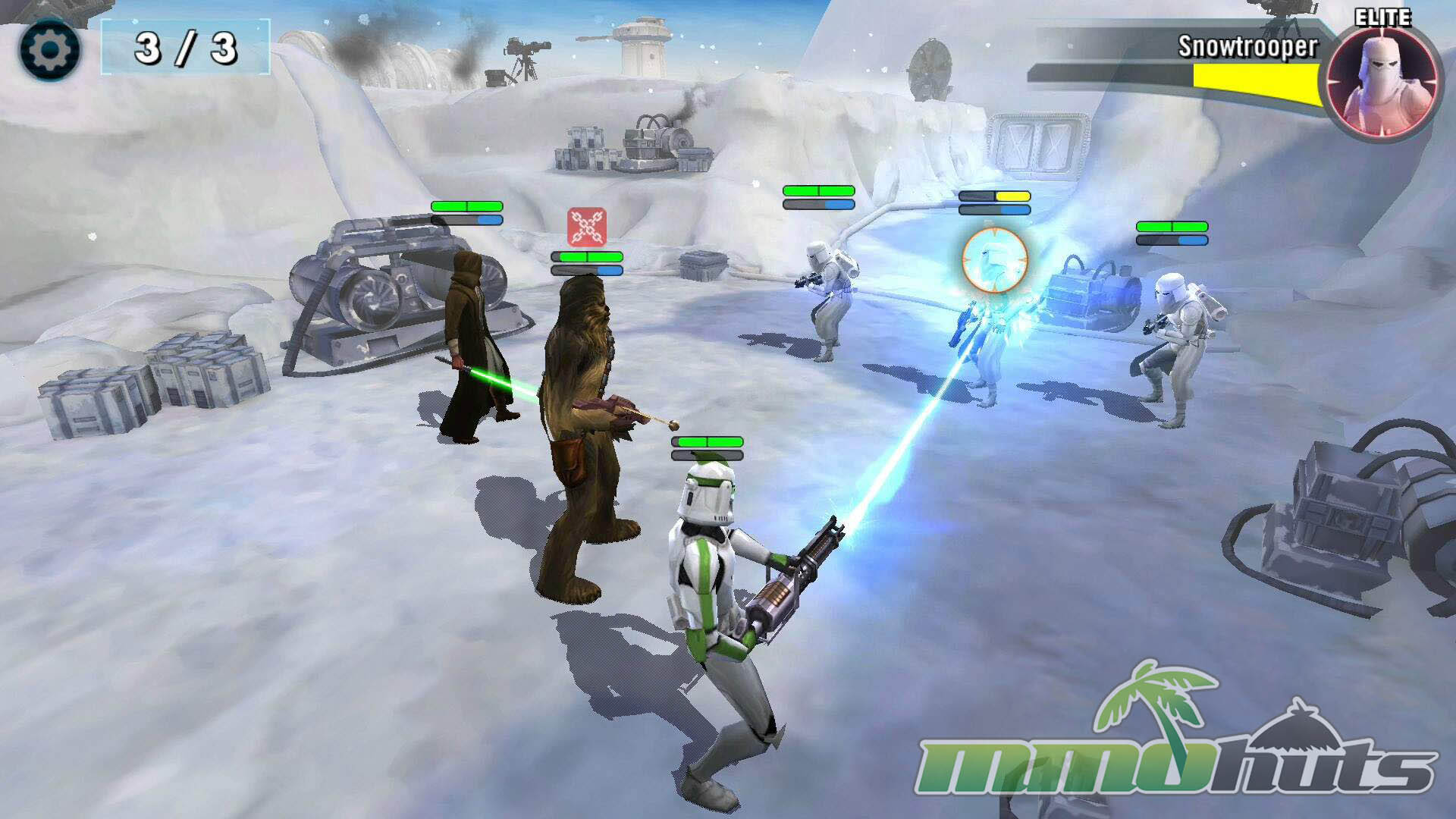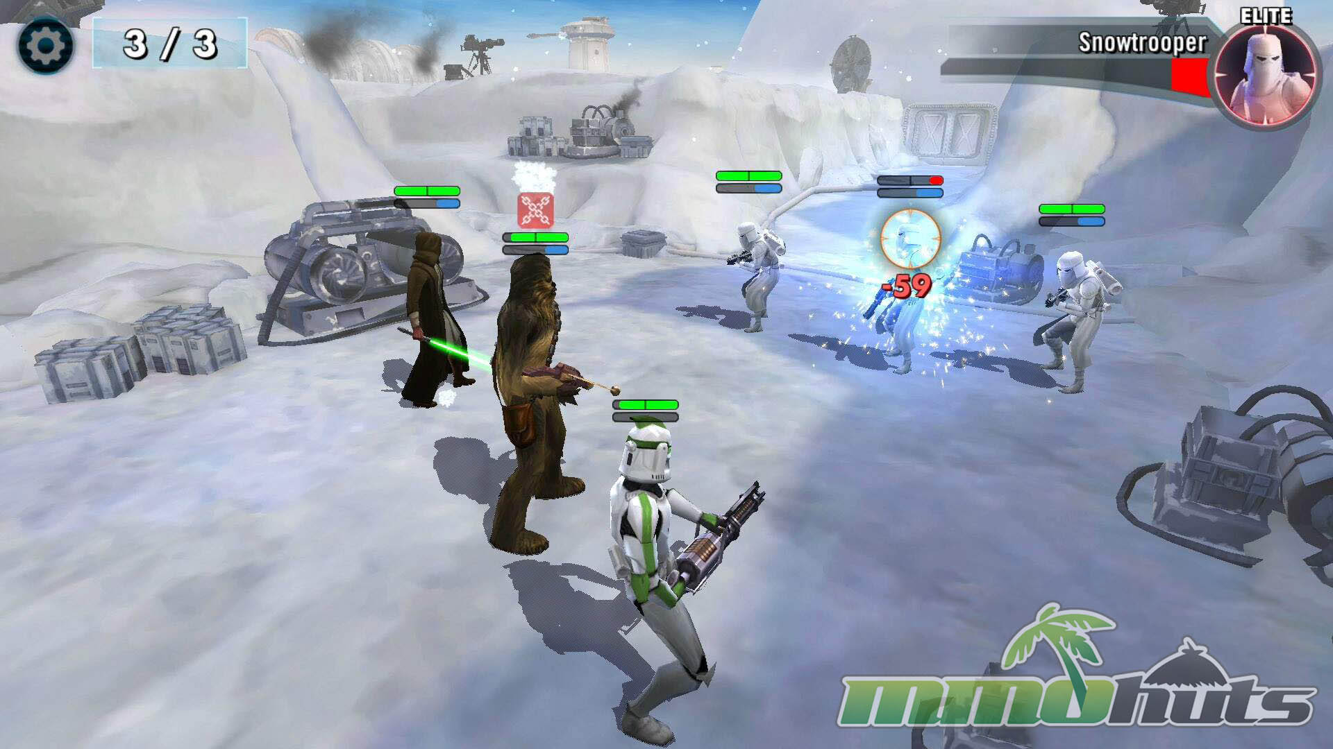 Star Wars: Galaxy of Heroes is a 3D, turn-based hero-collector RPG from Capital Games (also known for Heroes of Dragon Age), published by Electronic Arts. The pitch is straightforward: recruit famous Star Wars heroes and villains, build a five-unit squad, and clear a steady stream of battles for experience, shards, and equipment. The game’s main PvE path is split into Light Side and Dark Side campaigns, each made up of many short stages with multiple waves and periodic boss fights.
