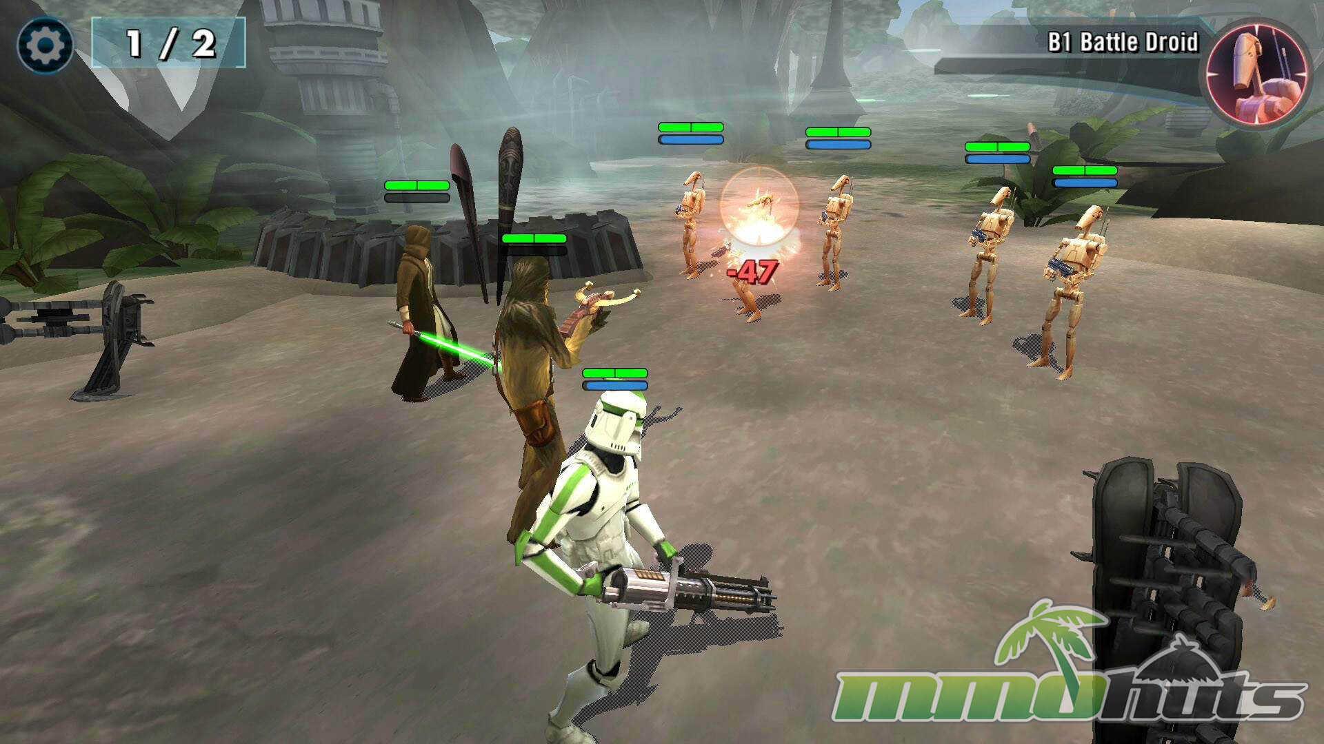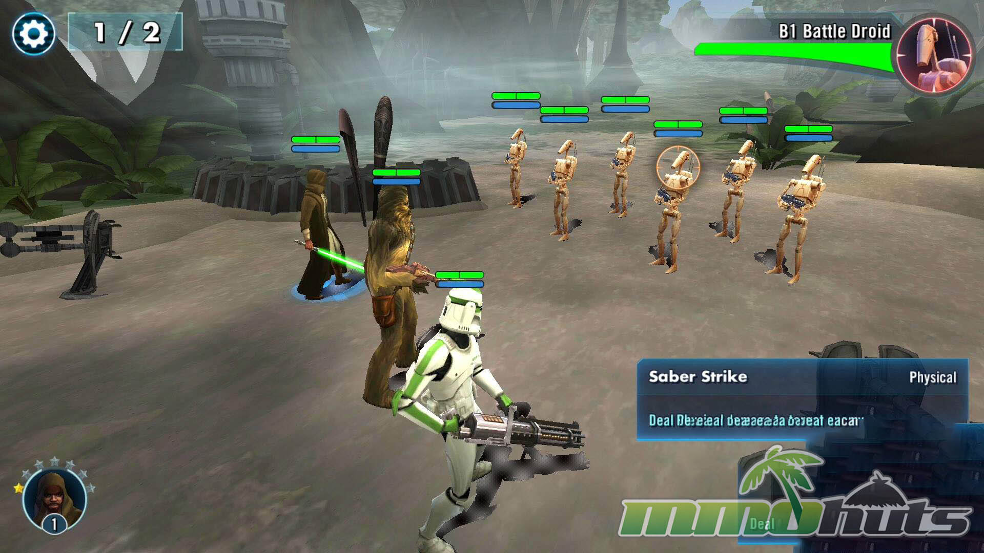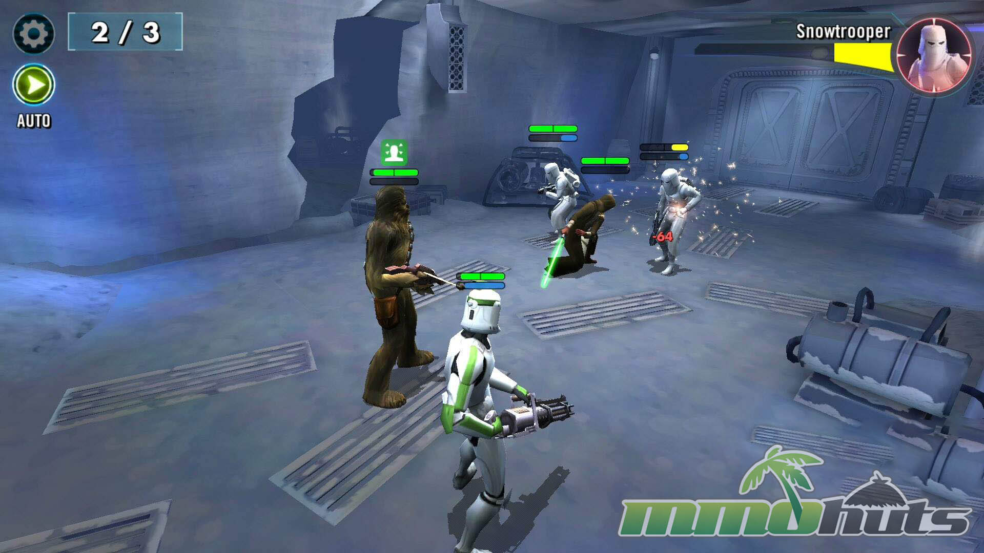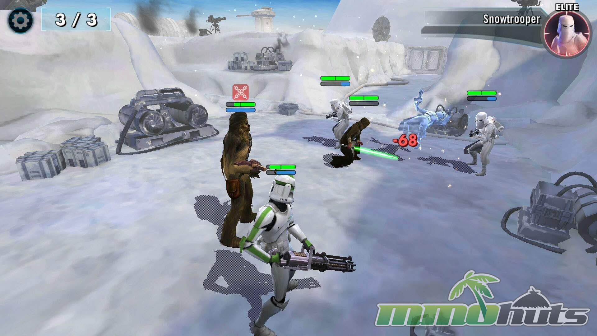 Star Wars: Galaxy of Heroes is a 3D, turn-based hero-collector RPG from Capital Games (also known for Heroes of Dragon Age), published by Electronic Arts. The pitch is straightforward: recruit famous Star Wars heroes and villains, build a five-unit squad, and clear a steady stream of battles for experience, shards, and equipment. The game’s main PvE path is split into Light Side and Dark Side campaigns, each made up of many short stages with multiple waves and periodic boss fights.