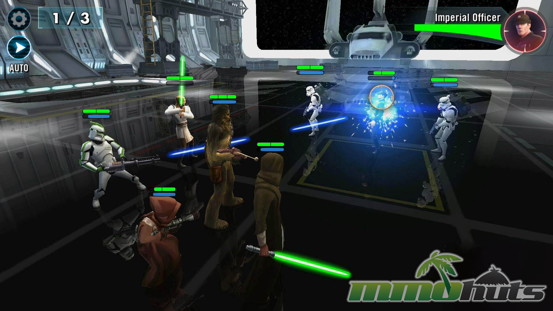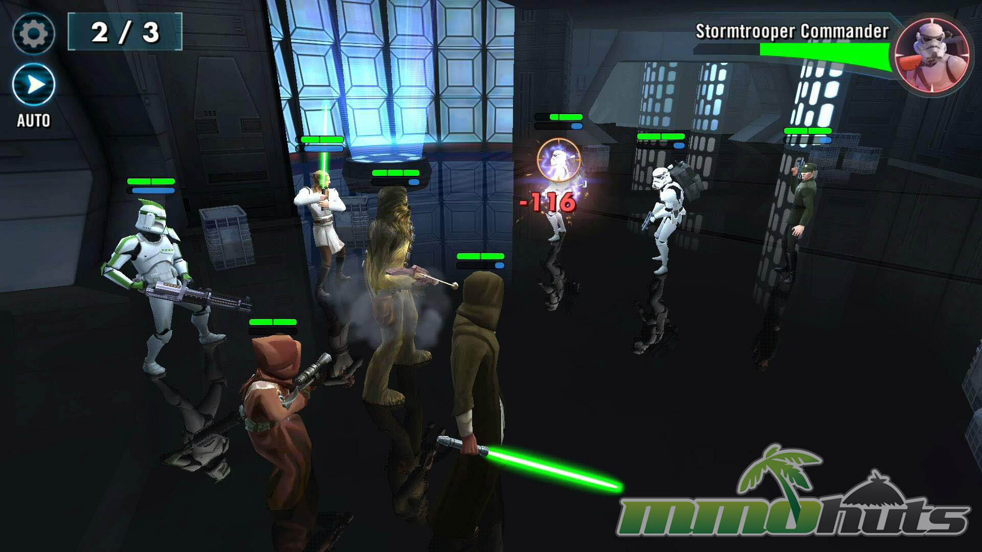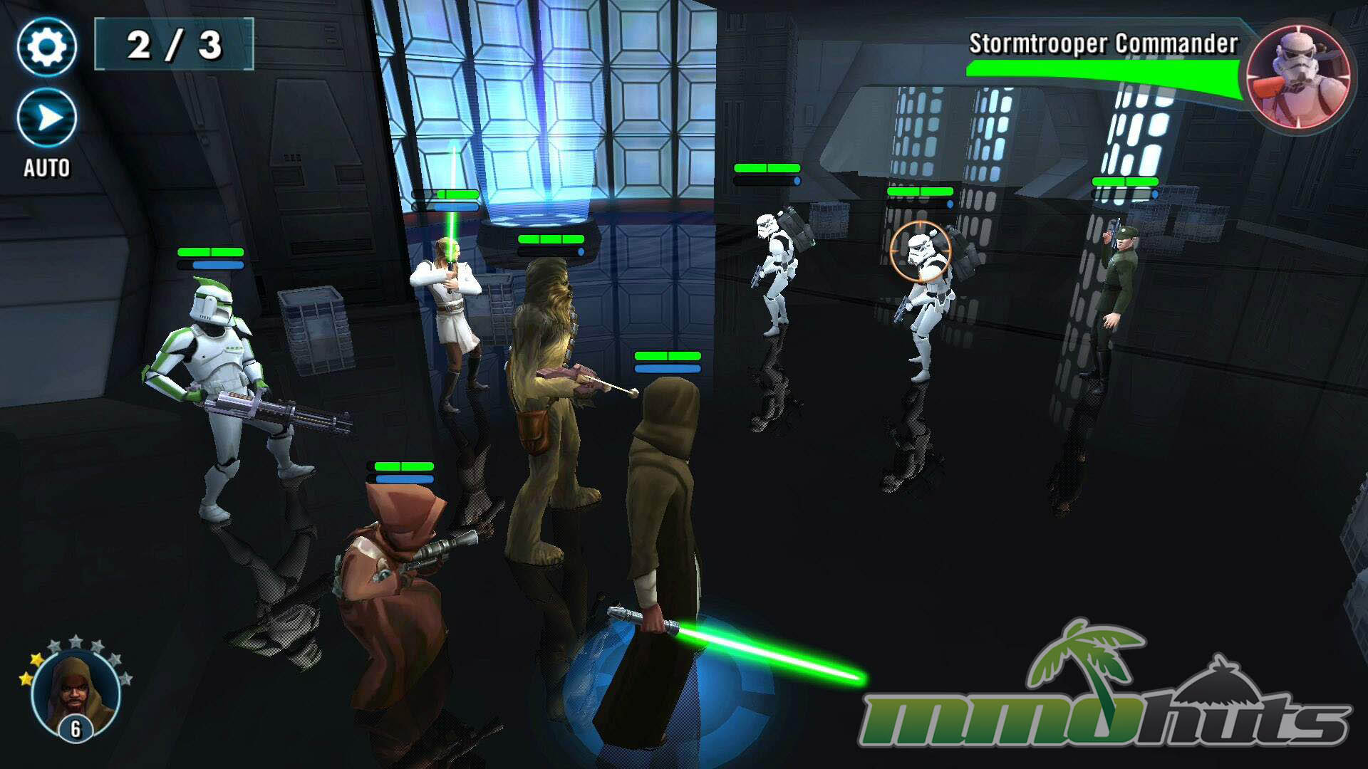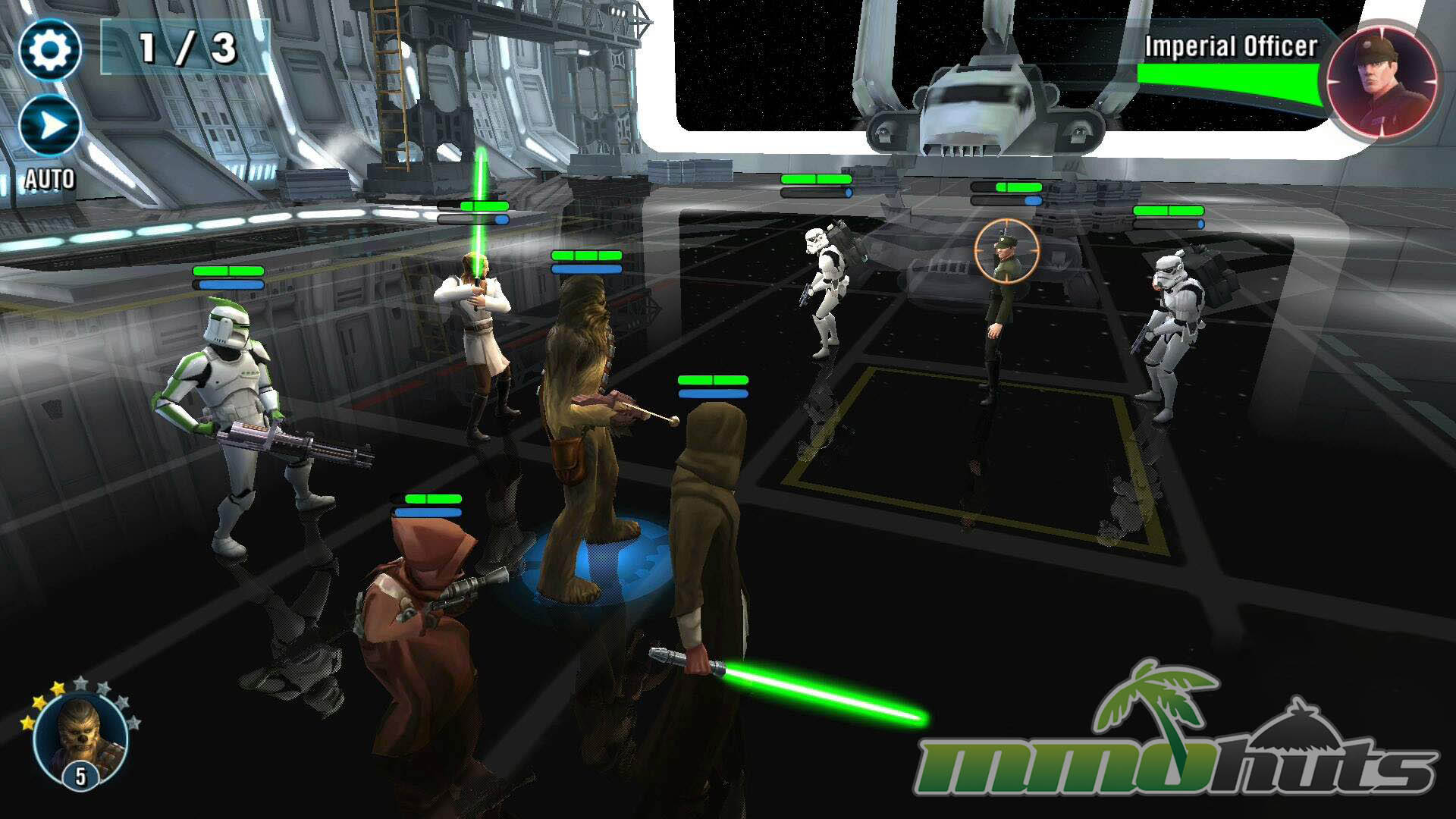 Star Wars: Galaxy of Heroes is a 3D, turn-based hero-collector RPG from Capital Games (also known for Heroes of Dragon Age), published by Electronic Arts. The pitch is straightforward: recruit famous Star Wars heroes and villains, build a five-unit squad, and clear a steady stream of battles for experience, shards, and equipment. The game’s main PvE path is split into Light Side and Dark Side campaigns, each made up of many short stages with multiple waves and periodic boss fights.