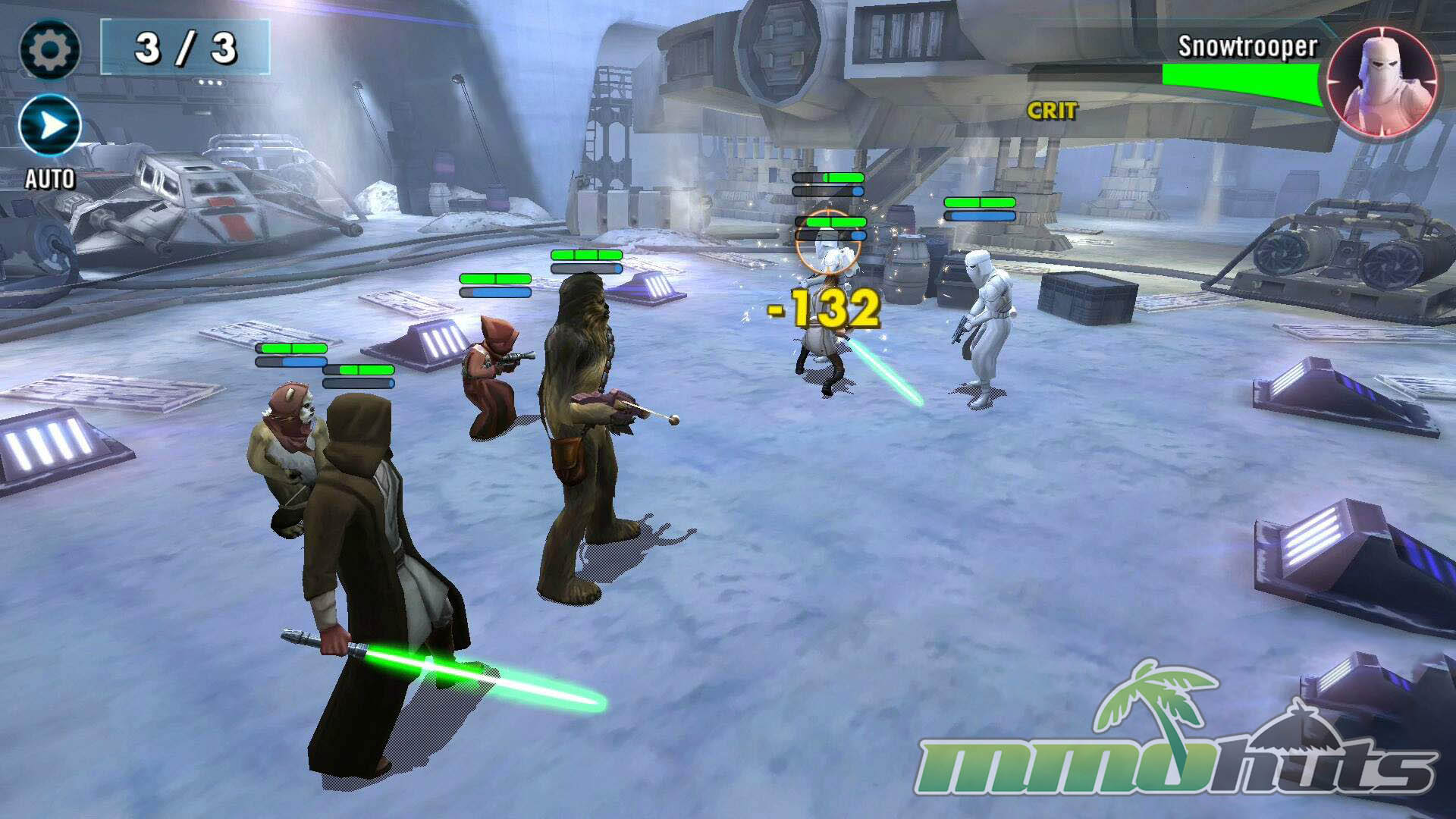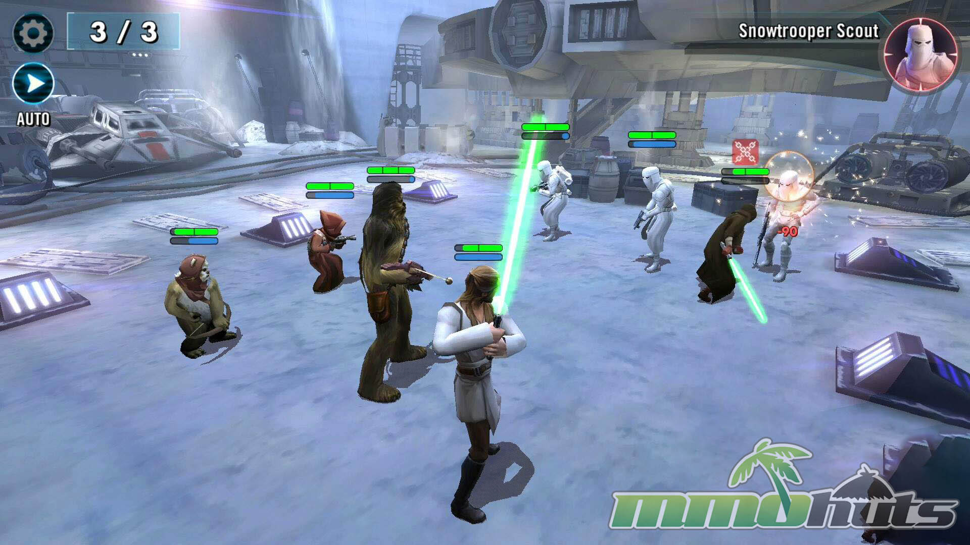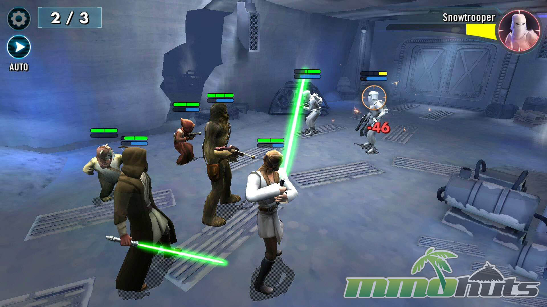 Star Wars: Galaxy of Heroes is a 3D, turn-based hero-collector RPG from Capital Games (also known for Heroes of Dragon Age), published by Electronic Arts. The pitch is straightforward: recruit famous Star Wars heroes and villains, build a five-unit squad, and clear a steady stream of battles for experience, shards, and equipment. The game’s main PvE path is split into Light Side and Dark Side campaigns, each made up of many short stages with multiple waves and periodic boss fights.