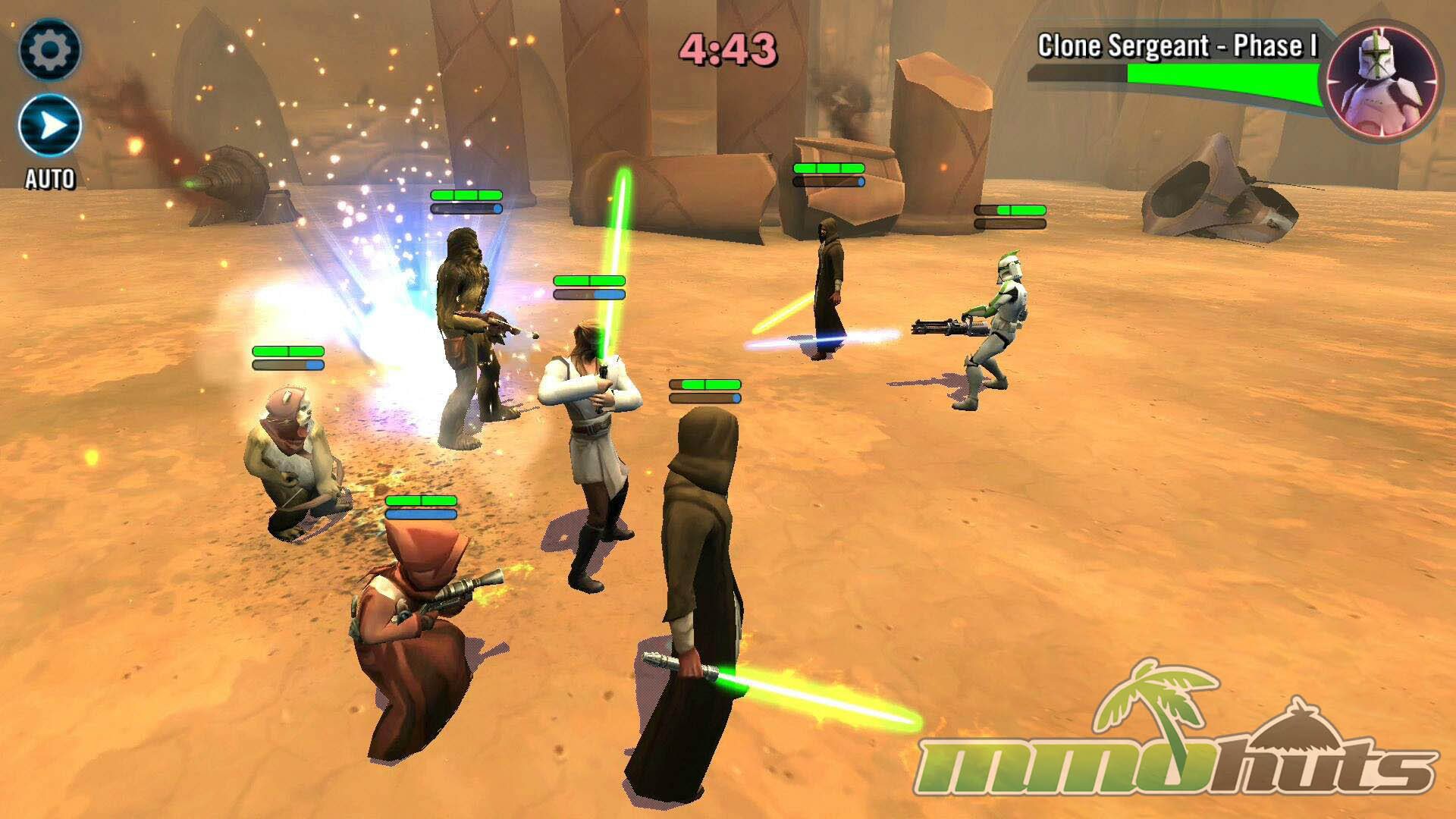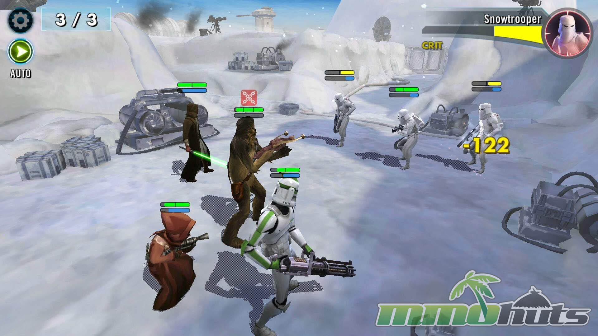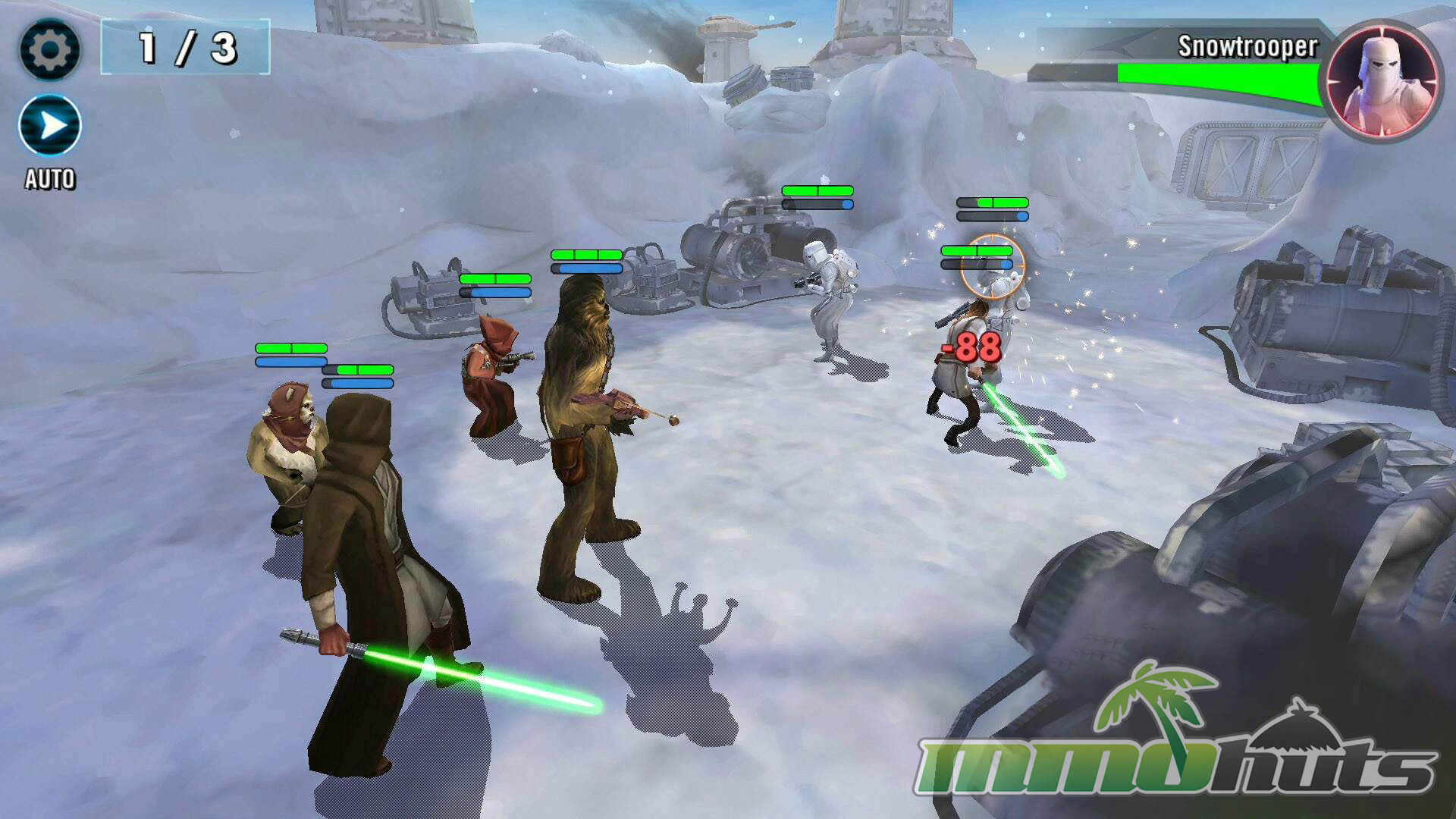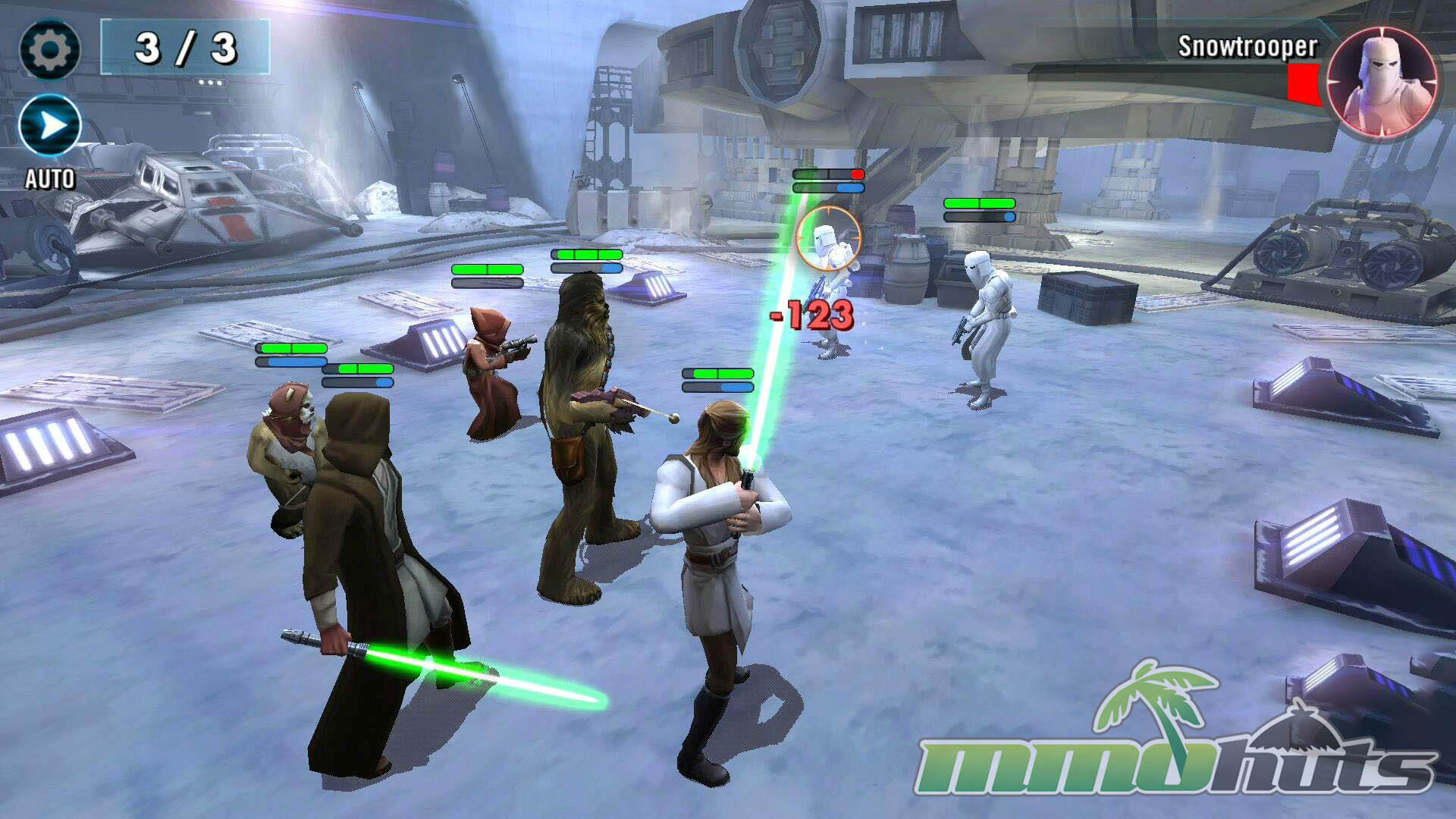 Star Wars: Galaxy of Heroes is a 3D, turn-based hero-collector RPG from Capital Games (also known for Heroes of Dragon Age), published by Electronic Arts. The pitch is straightforward: recruit famous Star Wars heroes and villains, build a five-unit squad, and clear a steady stream of battles for experience, shards, and equipment. The game’s main PvE path is split into Light Side and Dark Side campaigns, each made up of many short stages with multiple waves and periodic boss fights.