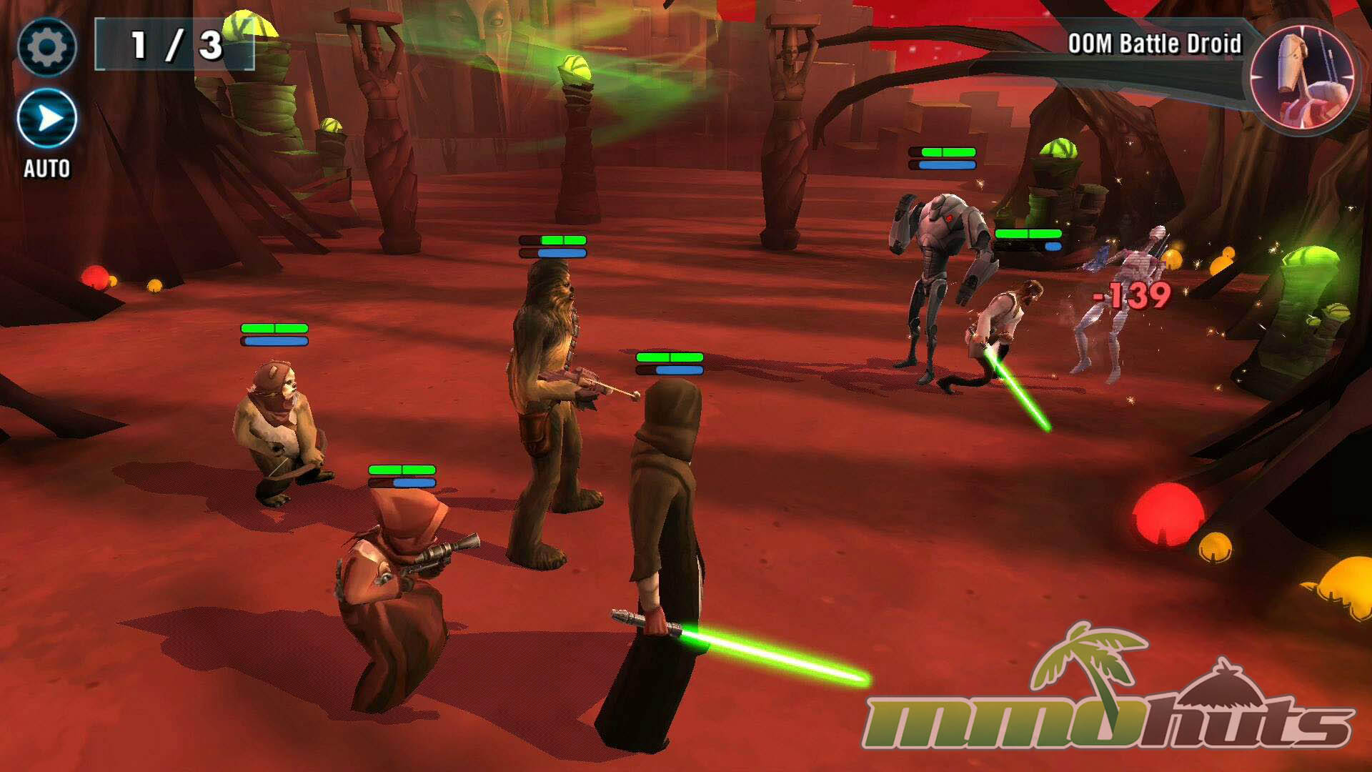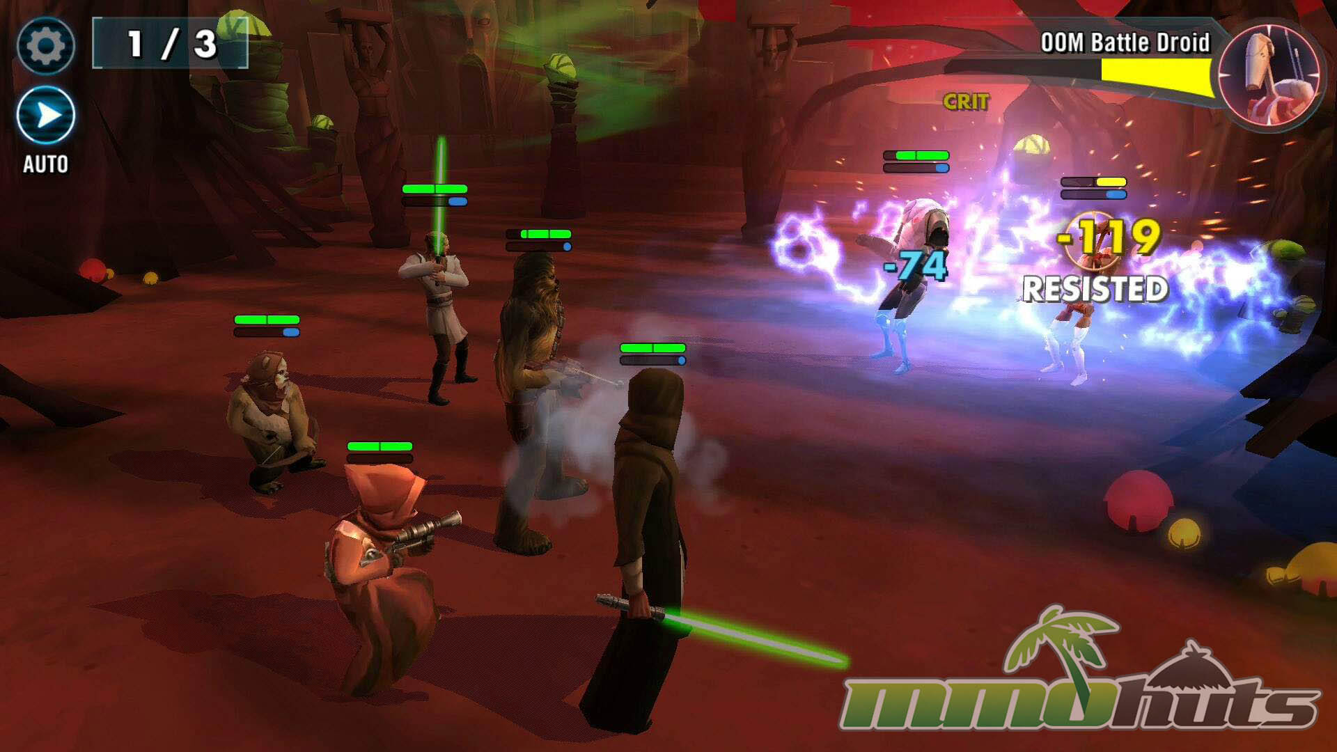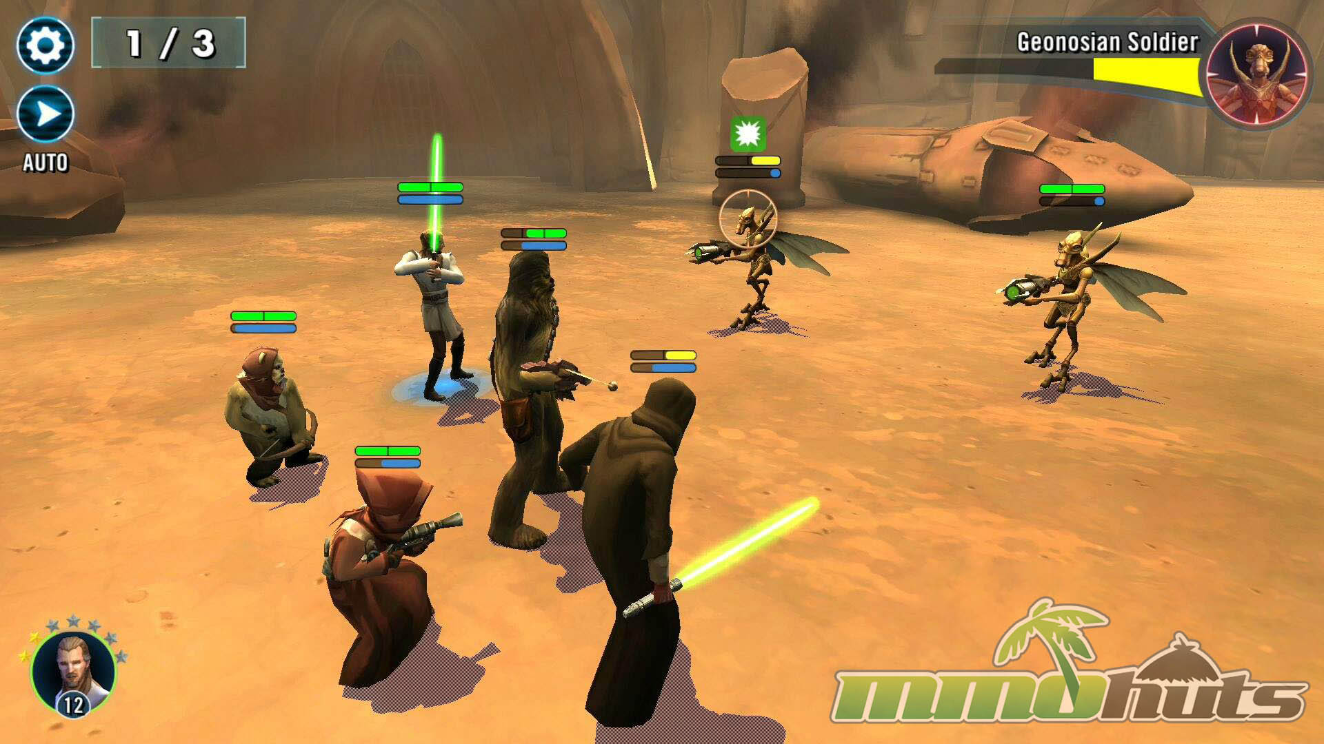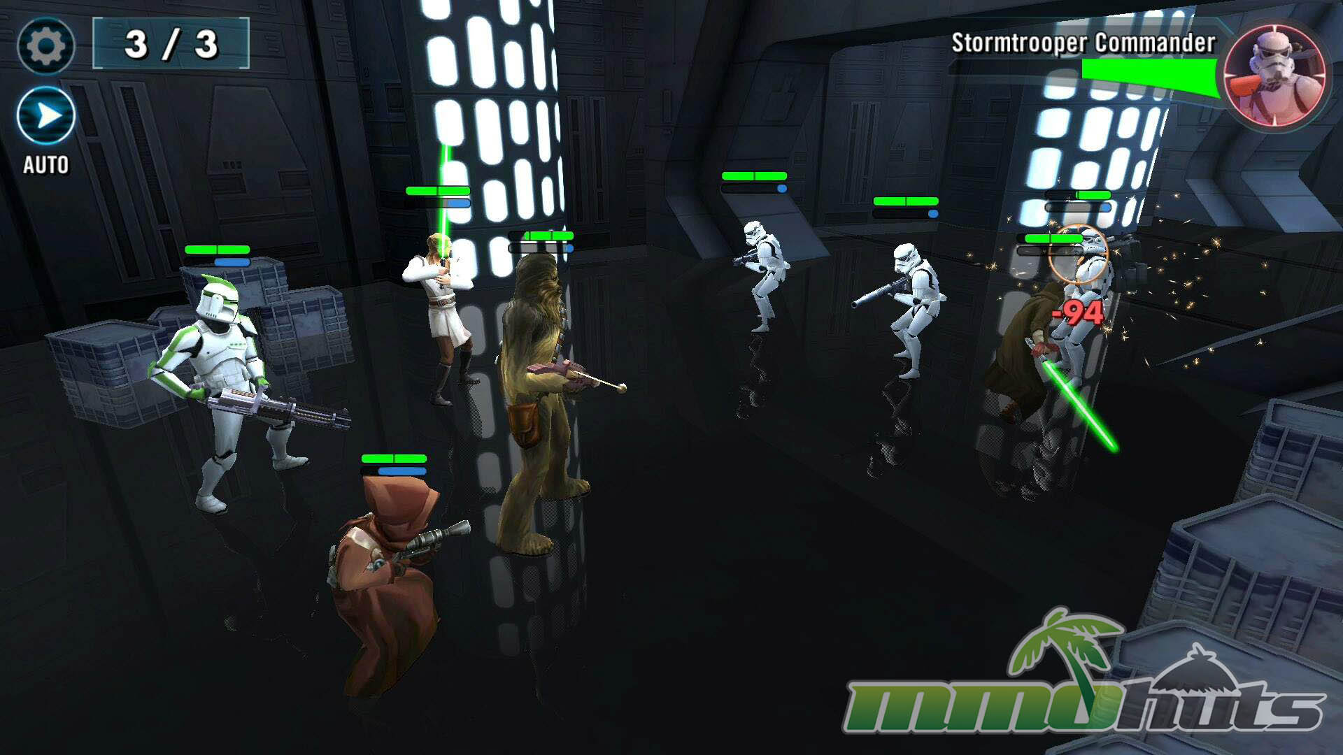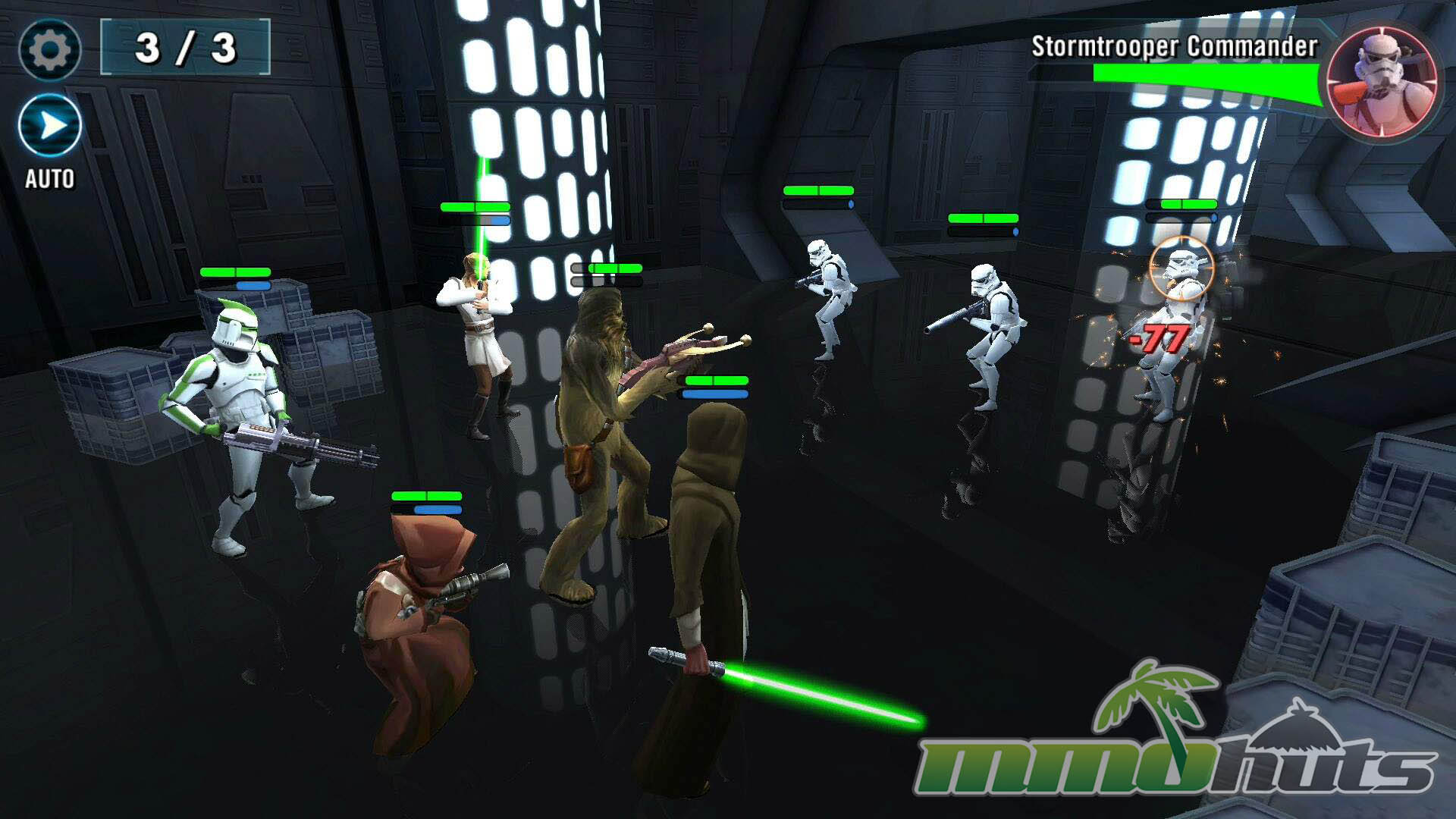 Star Wars: Galaxy of Heroes is a 3D, turn-based hero-collector RPG from Capital Games (also known for Heroes of Dragon Age), published by Electronic Arts. The pitch is straightforward: recruit famous Star Wars heroes and villains, build a five-unit squad, and clear a steady stream of battles for experience, shards, and equipment. The game’s main PvE path is split into Light Side and Dark Side campaigns, each made up of many short stages with multiple waves and periodic boss fights.