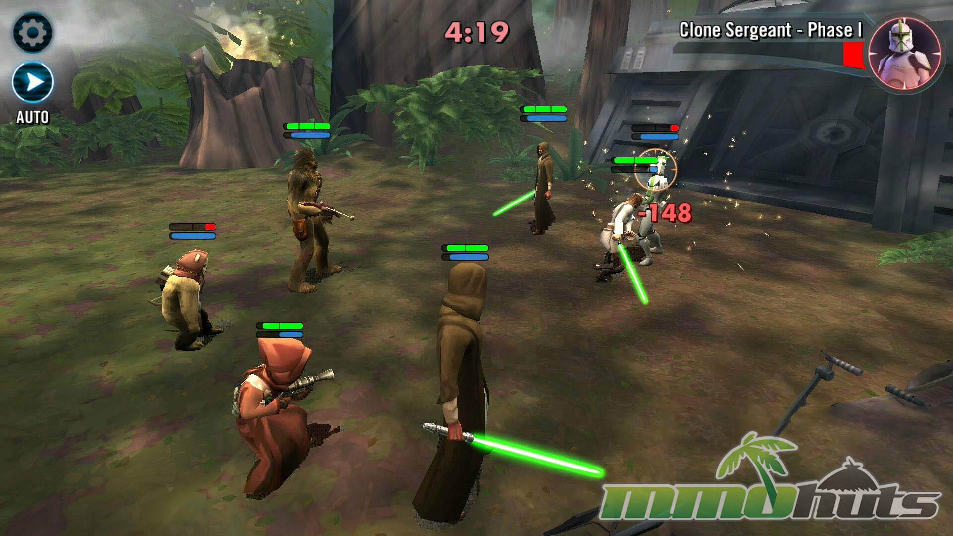 - Turn-based Combat – Squad battles built around targeting, ability timing, cooldown management, and an optional Auto setting.